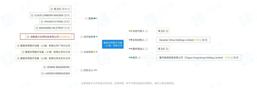 而雷度米特医疗设备(上海)有限公司旗下投资了一家本土公司为成都爱兴生物科技有限公司
