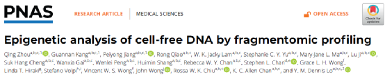 近日,香港中文大学卢煜明教授领导的研究团队在PNAS发表了题为“Epigenetic analysis of cell-free DNA by fragmentomic profiling”的文章。该研究突破了亚硫酸氢盐测序的局限性,证明了利用cfDNA片段模式推断cfDNA甲基化模式的可能性,并通过使用胞嘧啶磷酸鸟嘌呤(CpG)位点周围的cfDNA裂解概况(cleavage profile),在深度学习算法的辅助下确定了从特定区域到单个CpG的甲基化状态,证实了cfDNA的遗传和表观遗传信息可以从单一的非破坏性检测中获得。因此,基于碎片组学的甲基化分析(FRAGmentomics-based Methylation Analysis, FRAGMA)为无创产前、癌症和器官移植评估提供了更多可能性。