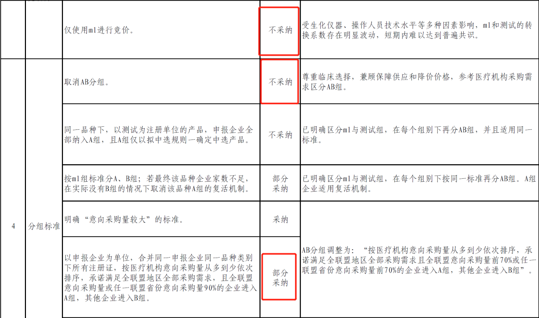 在网络征求意见采纳情况中,我们可以看到,联盟也不是不听取厂家和医院的意见,12个大类别,41个小意见,联盟都一一解答,而且给出合理恰当的解释,该采纳采纳,该拒绝绝。