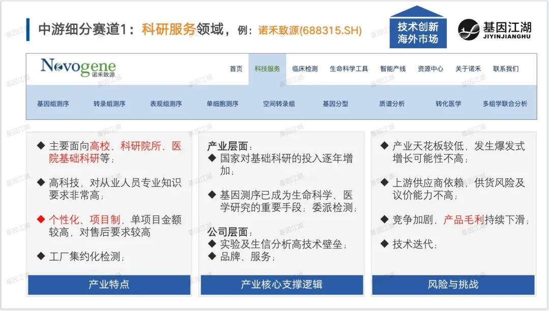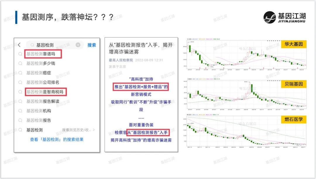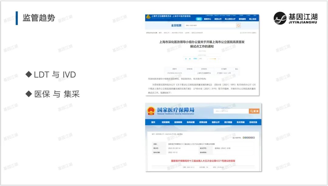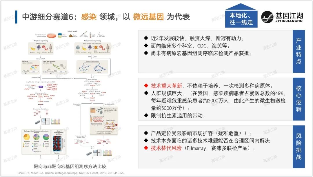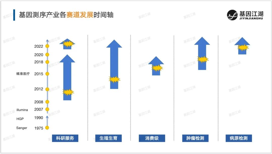 本PPT取自11月份笔者在德邦证券线下分享的PPT,听众主要是二级市场投资人。该群体一般并非医药背景,会同时看众多行业、多支股票,重点关注中短期赛道发展、公司前景,以辅助投资决策。 本PPT分为三个部分: 第一部分:技术。 聚焦测序技术,让受众对测序技术有一个客观认识; 第二部分:产业。 依次以产业、行业、赛道、公司(从大及小);以行业内上市公司分析(听众较为关注和熟悉)为切入口,探讨各个赛道的现状、风险、潜力、未来发展的突破口; 第三部分:展望。 依次为技术发展趋势、行业发展趋势、政策监管趋势,及畅想基因测序的未来形态。 核心观点已在PPT中进行描述。 提醒基因江湖的朋友们注意,本文只代表个人观点,一家之言,个人所见皆有局限,请批判性阅读、独立思考,更不构成任何投资建议。如有不同观点,也恳请加笔者微信讨论。 *NGS测序临床应用10年后,我们怎么重新看待这个技术?可以点击以前的文章:📎 沉思录 |