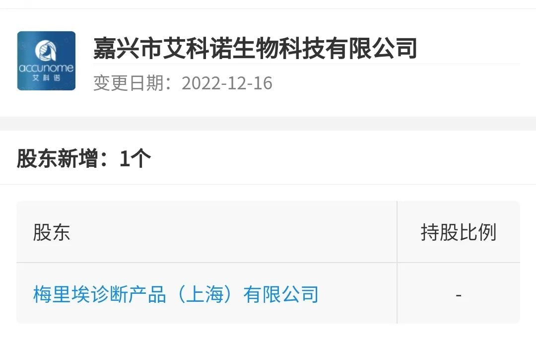 近日,嘉兴艾科诺生物的股东发生了变更,新增了梅里埃诊断产品(上海)有限公司,这也就意味着嘉兴艾科诺正式获得了梅里埃的投资。嘉兴市艾科诺生物科技有限公司是一家专注于分子诊断实验室自动化,并开发和推广适用于检验实验室的全自动核酸检测平台的公司,由杨星和肖国华两位海归博士于 2018 年 7 月创立,总部位于浙江省嘉兴市秀洲区,艾科诺在美国圣地亚哥和上海设立了研发中心,拥有完整分子生物设备和实验室。分子诊断自动化一般有两条路可以走,一条是做集成化解决方案,通过机械臂将各个功能模块链接,进而实现全流程的自动化,但是往往需要把机器的体积做的很大才能放得下所有的零部件。另外一条就是微流控方案,将实验过程全部集成在一个芯片或者一个试剂卡盒,这样就可以省去更多机械臂、省去更多的硬件之后,仪器就可以做的非常的小巧,更加便携,但是随着而来的就是试剂盒成本的急剧上升。 而艾科诺走的则更像是第三条路,抱着“既要自动化,也要物美价廉”的目的,从其今年年初上市的一体机DXcellence12就可以看出来,它既实现了封闭式自动化一体机,更加的小巧,同时在试剂的成本方面,依旧沿用传统试剂的形态,并没有大幅度上升。 企查查数据显示,这也是梅里埃继控股苏州长光华医之后,投资的第二家IVD企业,还是一家分子诊断公司。相较于同为外资企业的罗氏、丹纳赫、雅培等公司,梅里埃的分子诊断业务一直是跌跌撞撞。