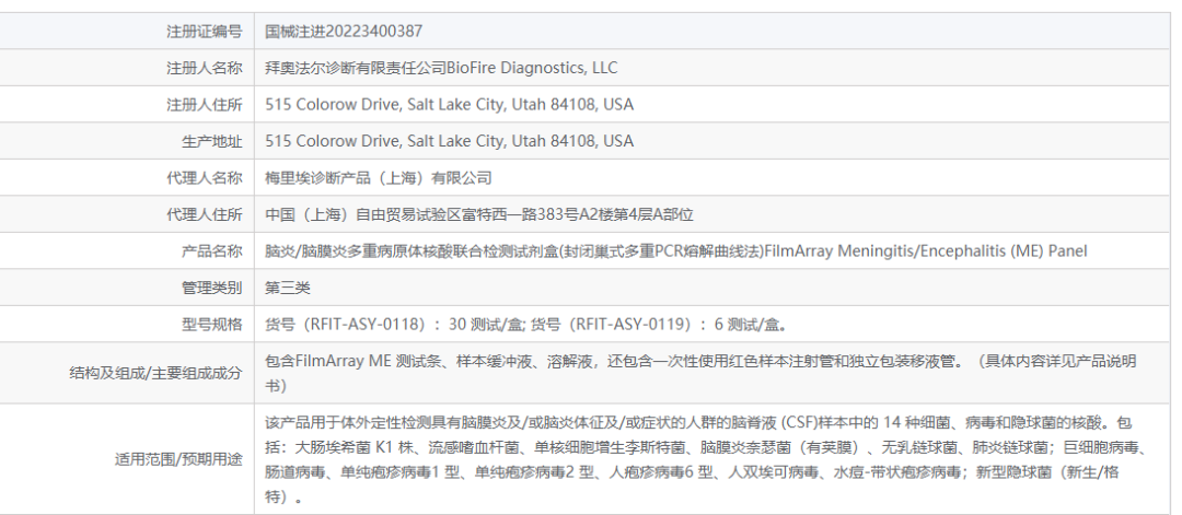 虽然早早就把filmarray这种分子诊断领域的精品收入囊中,但是其在国内市场却一直未曾拿到过试剂相关的注册证,直到今年8月才拿到一款脑炎和脑膜炎核酸多联检的产品;这也就导至了filmarray这款系统在过去的几年里,只能在疾控系统卖一卖,或者给医院的客户做做科研使用,大大的限制了其应用。 此次梅里埃投资艾科诺一方面可以看到梅里埃对于国内分子诊断行业未来发展的看好;另一方面也可见梅里埃在分子诊断产品领域更加全面的布局。参考资料:企查查、国家药监局
