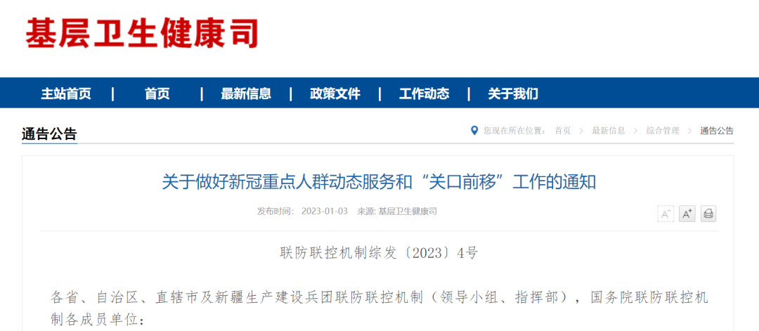 摘要: 关于做好新冠重点人群动态服务和“关口前移”工作的通知