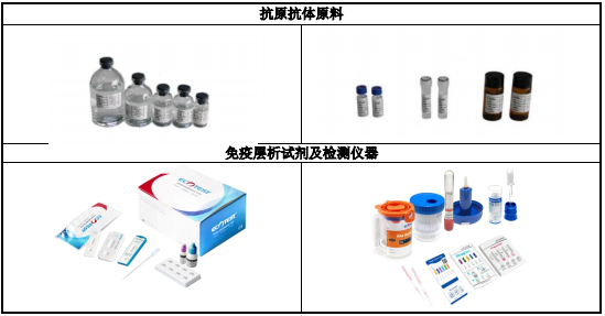 自2008年开始,就开始布局核心原料的自供计划,力争从进口逐步过渡到自产。生物原料平台的成熟和完善,促使掌握基因工程重组抗原技术、基因工程重组抗体技术、合成抗原技术、多克隆抗体制备技术和单克隆抗体制备技术,形成了包括合成抗原、重组抗原、单克隆抗体、重组抗体、多克隆抗体及其他生物材料共六大类产品,涵盖毒品检测、传染病检测、妊娠检测、肿瘤检测、心肌检测、肿瘤检测及慢性病检测等产品系列,