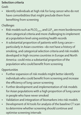 肺癌筛查面临挑战时存在的机遇: 以参与者选择的挑战为例,肺癌筛查也存在很多机遇(图7)。如: