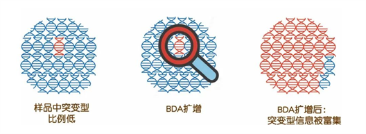 BDA就像一个放大镜,特异地放大了组织内突变型分子的信号,并大大抑制了野生型序列的扩增,可以更便捷更省力地检测到关键的信号。
