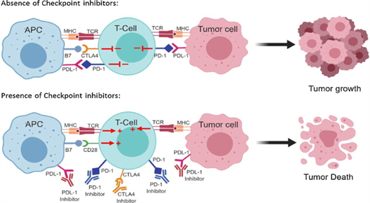除了靶向药物,近年来,基于免疫检查点抑制剂的免疫治疗大放异彩,成为人类在攻克肿瘤道路上获得的新武器。肿瘤细胞通过免疫检查点分子实现免疫逃逸,免疫治疗通过对免疫检查点分子的抑制激活自身免疫反应,消灭肿瘤细胞。