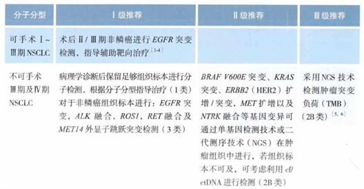 CSCO指南针对非小细胞肺癌患者进行EGFR突变、ALK融合、ROS1、RET融合及MET14外显子跳跃的基因检测进行了I级推荐,针对BRAF V600E突变、KRAS突变、HER2扩增/突变,MET扩增以及NTRK融合的基因检测进行了II级推荐,针对基于NGS技术进行TMB检测进行了III级推荐。相应的伴随药物主要集中在吉非替尼、埃克替尼、奥希替尼、克唑替尼等。