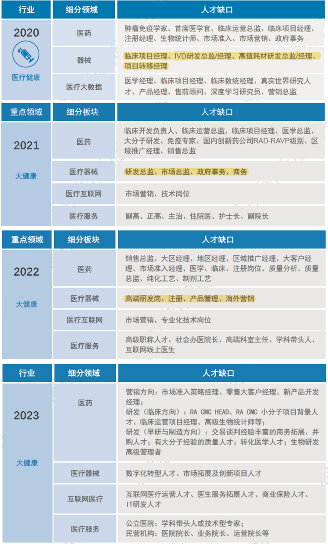 在各项医改政策的推动下,我国医疗器械行业正迎来一个高速发展期。各器械细分领域内的研发、质量、临床、注册等上游岗位将是未来五到十年的持续性热点,高质量的研发管理人才十分短缺。