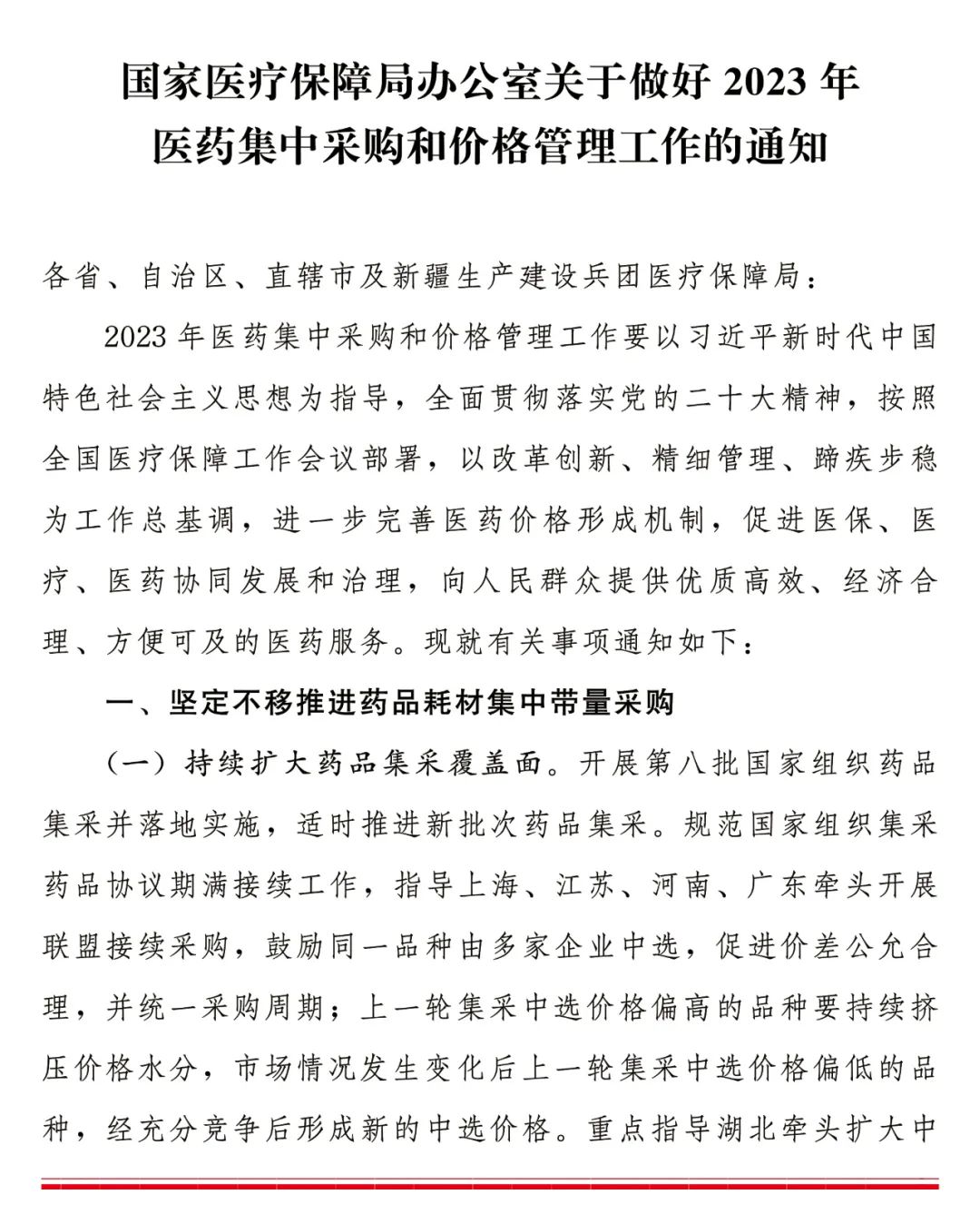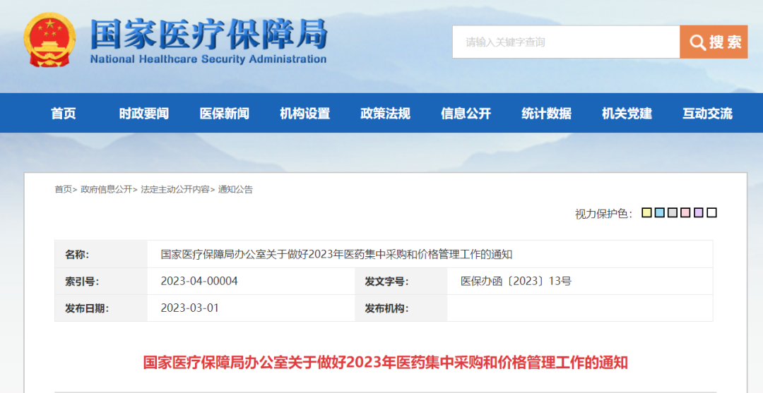 3月1日,国家医保局发布《国家医疗保障局办公室关于做好2023年医药集中采购和价格管理工作的通知》。
