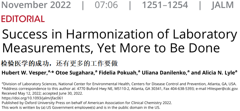 检验医学的成功,还有很多工作要做 冯仁丰 临床实验室检测是准确的,并在检测系统间和整个时间内是可比较的,是为病人诊疗和公共卫生系统是关键。以证据为基础的临床实践导则建议特定的决定点,去指导临床决定。电子卫生记录包括病人实验室数据、在卫生系统间的可转换、通知医师关于病人卫生保健病史。实验室数据在卫生系统内产生,并在卫生系统间用于确定病人群体、证实公共卫生关注,并跟踪结果。病人进入了将他们的实验室结果,与发表的可用信息比较,并与卫生保健提供者讨论。这些近期的发展已经推动了临床实验室的角色,和引入了实验室的机会,去为病人和卫生保健梯队提供有价值的信息。但是,这些进步和机遇要求准确和可靠的实验室检测。可靠性在这个层面上,由诸如分析灵敏度、特异性、精密度、和整个时间一致性等的特性组成。实验室检测结果的一致性和标准化,一致结果的更特定的做法可实现这个。一致性创建了实验室检测结果,可应用去实践导则、可比较、和在卫生系统间在整个时间可互换信息。 不一致的检测阻碍了有效的和相应的卫生保健作用,影响临床实验室能力为卫生保健梯队有效和成功地作出贡献。结果很差的一致性的临床影响已经被说了许多年。例如,2010年医学研究院认识到,“一个单一个人可被认为是维生素D缺乏或充分,取决于检测血液检测的实验室”(1)。临床实践导则,如2013内分泌协会对诊断和治疗多囊卵巢综合征(PCOS)的导则,指出“在睾酮(T)水平的变异和标准化检测很差下,难以确定一个绝对水平,可诊断PCOS和因雄性激素过多症其他原因所致”(2)。一个人可能被认为缺乏或充足[维生素D],这取决于血液测试的实验室。另外,研究发现,雌二醇缺乏准确度去检测病人经芳香酶抑制剂治疗的非常低的血清雌二醇水平(3)。需要准确和可靠的检测,也反映在由主要利益攸关方公布分析物标准化优先事项清单,如激素准确检测合作伙伴关系和国际临床实验室结果统一联盟。 CDC开始标准化传统的血液脂类检测超过了60年,并实现了全球检测产品的检测可比性。CDC计划的成功激发了建立国家糖化血红蛋白标准化计划(NGSP),这是CDC模仿了胆固醇参考方法实验室网络计划(4)。血红蛋白A1c的检测现在被高度标准化,并在全球具有可比性。CDC仅在近期收到了国会的资助,去支持它的标准化和一致性计划。这个至关重要的资助使得CDC可以:(a)保持和扩展标准化计划,包括新的和出现的心血管生物标志物,如脂蛋白;(b)扩展它的范围,从4个传统的血液脂类(总胆固醇、三油酸甘油酯、和高-和低-密度脂蛋白-胆固醇),到26个分析物,与内分泌和其他慢性疾病关联;(c)增强技术给其他组织支持,如:美国临床病理协会(CAP)、国家标准和技术研究院(NIST)、和英国国家生物标准和对照研究院(UKNIBSC)、和法国国家计量实验室。资助进一步使得CDC建立新的参考区间发展项目,促进使用一致性检测,并评估POCT设施。CDC的临床标准化计划(CSP)由相应计划组成,集中于项目和技术支持。这些活动使得数千实验室得到他们检测产品(方法)分析性能信息。CDC CSP协助实验室和检测产品厂商,去改善检测准确度和可靠性,通过全面、独立的、和公开的评估,并证明计划参加者,符合由临床利益关联者建立的性能指标。[http://www.cdc.gov/labstandards/hs.htm]。 通过CDC CSP的工作,实验室和检测产品厂商具有一个相应工具范围,可用于相应的评估和改善分析性能。它创建了和供给高质量、单一供体的参考物质,支持了有证参考物质可用在计量组织,通过CDC CSP和室间质量评估提供者,并实施和支持以准确度为基础的纵向和跨越部门的调查。实验室和检测产品厂商成功地参加了CDC CSP,展现了与其他实验室和厂商比较,具有较高水平的准确度和可靠性(5,6)。另外,继续参加这些计划,可导至在准确度上的连续改进(7)。 使用准确和可靠的检测产品的好处,被利益关联者很好地认可。组织者如准确激素检测的合作,包括了AACC和CAP,激励使用标准化的检测产品。研究者使用被CDC CSP标准化的检测产品,包括被CDC参考实验室在他们的研究中确定的质量控制物质,如国家卫生和营养检查(the National Health and Nutrition Examination)调查(8)、维生素D和OmegaA-3试验(VITAL)(9)、和T-试验(10)。如内分泌协会形成了在标准化检测下建立了临床决定点的导则(11),并形成了关注检测质量和标准化的教育材料。另外,设施厂商在包装说明书上关于溯源性到CDC CSP的信息,并让购买支付者认识到试验标准化检测的重要性(12)。 除了有相当的进展外,为改善用于病人诊疗的检测产品准确度和可靠性依然在努力。标准化计划的参加是自愿的。结果,标准化的和非标准化的检测产品被用于病人诊疗,没有任何差别,例如,即使CDC的维生素D的标准化-验证计划,已经进行了9年,无标准化的检测产品没有足够的准确度,还在继续使用;这样,持续存在错误分类病人的潜在性,正如近期CAP报告中指出的。临床应用连同分析性能要求在改变。如低密度脂蛋白-胆固醇的靶值,在近期导则中,远低于以往的国家胆固醇教育计划导则。所以,分析性能要求和由国家胆固醇教育计划导则形成的评估需要相应改变。随着检测校准一致性,其他样品特定因素影响了检测的准确度和可靠性,如与分析特异性有关的问题更明显了,是检测准确度的关键。作为第一步,CD