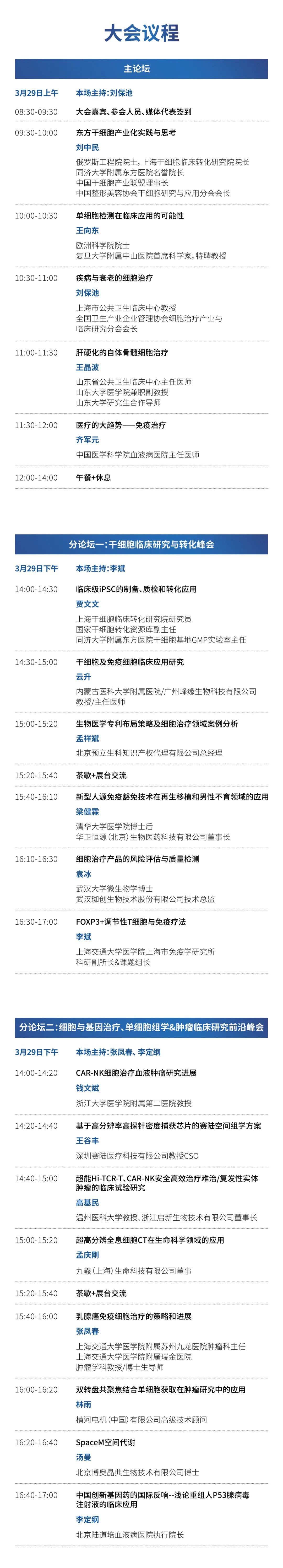 会议时间:2023年3月29-30日 会议地点:上海建工浦江皇冠假日酒店 组织单位 2023年3月28日14:00 【会议举办时间】 2023年3月29日08:30-17:30 2023年3月30日08:30-17:30 赞助商签到: 3月28日14:00 以后、3月29日以及3月30日早上 07:00-09:30 可以进行赞助商签到并且领取贵司的会议资料和参会证件。 听众签到: 3月29日早上08:30-09:30或3月30日早上08:30-10:00。发票请于任意午休期间至签到台领取,每天上午08:30-10:00前的签到高峰时间段恕不接待发票领取事宜。 演讲嘉宾签到: 3月29日或3月30日早上08:30-09:30。请务必至少在您的演讲前2小时完成签到。签到后会有工作人员带您进入会场嘉宾席。 订房链接如下: https://www.crowneplaza.com/redirect?path=asearch&brandCode=CP&localeCode=zh®ionCode=280&hotelCode=SHGPU&checkInDate=28&checkInMonthYear=022023&checkOutDate=30&checkOutMonthYear=022023&rateCode=6CBARC&_PMID=99801505&GPC=BG8&cn=no&viewfullsite=true 咨询电话021-33293688转预订部 欲了解更多生物医学领域政策、资讯、会议信息 欢迎扫描二维码关注 |
