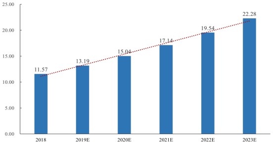 浩欧博招股书给出国内自免市场的规模为22.28亿元人民币。19年至23年年增长14%。