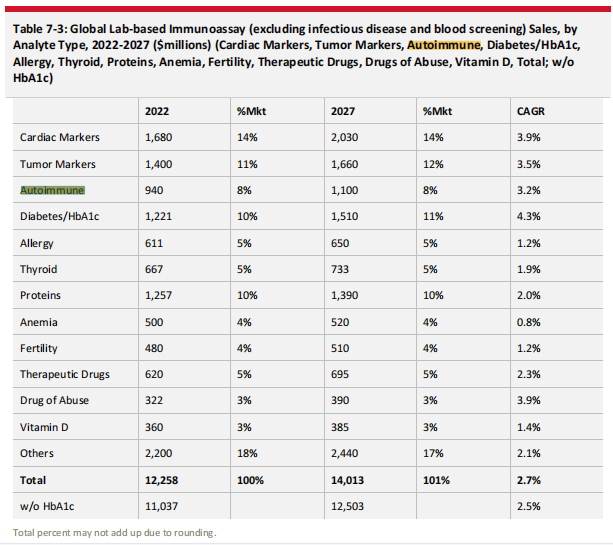 《The Worldwide Market for In Vitro Diagnostic Tests, 15th Edition》选择的国际自身免疫巨头创新产品介绍