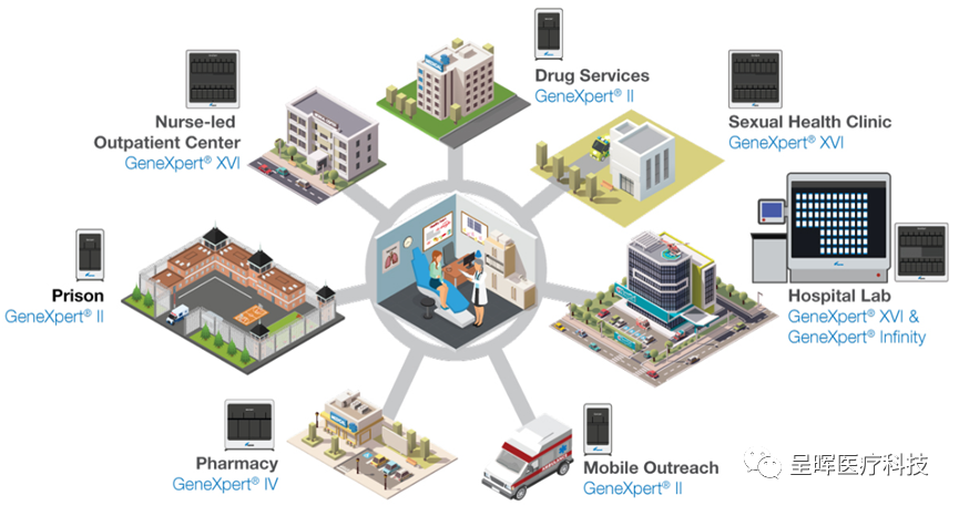 核酸检测是感染类疾病诊断的金标准。特别在感染初期,核酸检测的阳性检出率显著地高于抗原检测。 新冠疫情也让大家对核酸检测耳熟能详。然而,新冠疫情中的核酸检测也普遍给人一个感受——慢。明明上午采的样,偏偏下午才能出结果。有时甚至要等到晚上或者第二天才能给出结果。这也表现出了核酸检测的当前弱点:样本周转时间和检测时间长。 核酸检测本身是一个对靶基因进行百万倍放大的过程,所以核酸检测的灵敏度极高。灵敏度极高带来的好处是,能比抗原检测更早的检测出阳性病人。灵敏度高也同样带来了坏处:核酸检测对于污染非常敏感。这里的污染主要是指气溶胶污染和样本交叉污染。这样,为了保证整个核酸检测的结果准确性,我们就要尽可能的规避污染。所以,传统的核酸检测要在标准的PCR实验室进行。PCR实验室有独立的几个房间,有相应的空气流道设计,对于PCR扩增间还要进行负压设计,以尽可能的规避气溶胶污染。整个核酸检测对于操作人员的专业性要求也比较高。操作人员在正式上岗之前要参加培训、考核,最终持证(PCR上岗证)上岗。所以,我们做新冠核酸检测,实际上采集的鼻咽拭子样本要统一送往有PCR实验室的地方集中检测。这也就是传统的核酸检测给人的感觉速度很慢的原因了。 分子POCT产品就是为了解决上述两个痛点应运而生的。首先,分子POCT讲究“样本进结果出”和全密闭。这就意味着,样本加进去之后,样本前处理(主要是核酸提取)和PCR扩增都在与周围空气隔绝的全密闭环境下全自动的进行。这就有效的规避气溶胶污染和样本交叉污染。这也就能使得分子POCT产品理论上能脱离PCR实验室使用,从而解决了核酸检测对环境要求苛刻的痛点。此外,由于分子POCT产品是全自动实现整个核酸检测的全过程,所以对于操作人员的要求低很多,普通医护人员稍加培训即可掌握。这也解决了核酸检测需要专业操作人员的应用痛点。 由于分子POCT解决了传统核酸检测对于实验室和人的高要求的应用门槛,使得核酸检测能下沉到基层医疗机构,能进入临床科室的床边进行即时诊断。这也极大的拓展了核酸检测的应用范围,扩大了整个分子诊断的市场空间。 此外,多重(两重及以上)分子POCT又带来了新的应用。由于可以一次检测两个或者两个以上的病原体靶标,多重分子POCT能在临床上快速的定位出引起此次感染的病原体是什么,从而为后续的治疗/疫情防控做出重要贡献。 GeneXpert作为全球第一款分子POCT产品,其在2019年销售额为10亿美元,在2021年销售额为35亿美元(有新冠检测的加持)。FilmArray作为全球第一款超多重(10重以上)分子POCT产品,其2019年销售额为6亿欧元,2020年销售额为10亿欧元。这两个产品的大卖,也让分子POCT这个赛道大放异彩。在最近几年里,罗氏、雅培、赛默飞、丹纳赫、生物梅里埃、凯杰等全球IVD巨头纷纷以并购的形式进入分子POCT赛道。在中国,一方面,分子POCT创业公司如雨后春笋一般纷纷涌现;另一方面,IVD大厂们也纷纷要么以投资要么以内部自研的形式切入这个赛道。一时好不热闹。 那么问题来了,GeneXpert和FilmArray的成功,国内市场可以复制么? 对此有疑问的人总是以国内跟欧美的应用场景、医保制度差异太大为由,论述GeneXpert和FilmArray在欧美市场的成功有其特殊性。但是,纵览国内IVD行业的各个子赛道,又有哪个产品在欧美市场做的风生水起,在国内市场却就泛不起涟漪的呢? 我们先分别来看看GeneXpert和FilmArray在欧美市场的主要应用场景。 GeneXpert的检测菜单分为五个大类:院内感染;HIV,HBV,HCV伴随诊断;紧急传染病(呼吸道为主);性传染病;肿瘤伴随诊断。其产品的应用场景如下图: GeneXpert的具体应用场景包括:药店、移动诊所、门诊、监狱、性病相关的临床科室、院内检验科室等。GeneXpert解决了药店、门诊、急诊、基层医疗、临床科室对于感染类疾病即时诊断的需求以及癌症伴随诊断的需求。需要说明的是,GeneXpert由于只有一个QPCR扩增腔,配合6路荧光通道,一次最多可以做5个指标的检测(5重QPCR),因为要预留一个荧光通道做内部质控(intern control)。所以GeneXpert更多的应用在常见病原体感染的初筛以及感染病原体指征较为明确的场景。此外,由于GeneXpert能够实现定量检测,因此也用于慢性传染病的伴随诊断。 FilmArray的检测菜单分为6个大类:呼吸道感染22联检;血液感染43联检;消化道感染22联检;脑膜炎/脑炎14联检;肺炎33联检;关节感染39联检。其主要解决的是危急重症感染对于快速病原体诊断的需求。FilmArray通过多腔室超多重检测的设计,能有效提高危急重症感染的病原体检出率,缩短病原体检出时间,从而缩短患者ICU住院天数,有效减少了抗生素的滥用。在某些情况下,甚至能挽救患者的生命。 使用FilmArray的呼吸道感染检测panel之后,呼吸科ICU患者平均住院天数从9.2天缩短至6.2天,抗生素平均使用周期从3.2天缩短至2.7天。 GeneXpert和FilmArray代表的两种产品形态在中国也是有同等重要的临床应用价值的。一方面,我们把分子POCT做的足够便宜,能真正下沉到没有PCR实验室的基层医疗机构,去解决呼吸道感染、性病、结核等的精准诊断问题;另一方面,我们的分子POCT也能解决二级、三级医院门诊、急诊里面对于呼吸道感染、性传播疾病等情形下的感染病原体快速定位的问题。 此外,国内危急重症感染当前还是没有很好的解