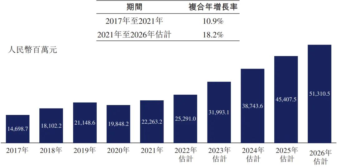 1.1 临床诊断检测简介 临床诊断检测是在实验室进行的医疗检测,旨在提供有关某一人士健康状况的资料。这一资料可协助医生针对病患护理作出精确及个人化的诊断决策。 根据弗若斯特沙利文的资料,大约70%至80%的临床决策乃以某些形式的实验室检测为基础。此外,临床检测亦能够协助制药及生物技术公司研发新药及疫苗,支持私营企业雇主检测其雇员的酒精及药物滥用情况,并帮助保险公司评估与申请人健康状况有关的风险。 临床诊断检测通常由三类提供商进行,即医院实验室、独立医学实验室或ICL及其他(如医生办公室、疗养院及门诊手术中心),其中,就收益及检测量计,医院实验室为最大的医学检验服务提供商。 医院实验室通常仅为其自身住院病人提供检测,而另一方面,ICL独立于医院,自大量医院及研究机构接收样本进行分析。相较于医院实验室,ICL的规模通常较大。ICL通常拥有更先进的设备及技术上更训练有素的实验室人员,使得彼等能够以更具成本效益的方式进行专业检测及大量测试。 根据弗若斯特沙利文的资料,医院实验室的测试目录通常拥有约800项测试项目,大部分为普检项目,可满足一家医院就诊患者的基本诊断需求,而ICL通常能够提供检测1,000多项测试项目,包括涵盖专业特检在内的各种检测类型。 下图概述中国临床检验服务提供商的优势及劣势。 ICL是经卫生行政部门许可,具有从事临床或病理试验服务资格的独立法人实体。 中国ICL产业的发展可分为五个阶段:起步阶段(1980年代至1994年)、探索阶段 (1994年至2004年)、初步发展阶段(2004年至2016年)、快速发展阶段(2016年至2019 年)及加速发展阶段(2019年至今) 1980年代以前,中国的医疗诊断服务均由医疗机构的临床实验室及病理科提供。 随着诊断技术的发展及临床需求的变化,中小型医院由于能力有限而无法进行全面的检测,从而导至需要将患者的样本转移至大型医院进行诊断。 1980 年代中期,扬州临床检验中心开始提供体检服务。 后来,随着医疗服务市场的不断开放,一些检验服务中心开始与医院合作,形成单体ICL,仅提供有限的检测,并未规模效益。 1994年,中国第一家ICL成立,附属于一所医学院。自1994年至2004年,中国ICL产业开始缓慢发展。 2004 年,卫生部在中国举办了第一届ICL 研讨会,汇集了中国各地的医学专家、医疗器械及试剂供货商。此后,国内一大批ICL 及连锁机构相继成立。 2009年,卫生部颁布《医学检验所基本标准(试行)》,正式承认ICL的合法地位,此后该行业经历了显著增长。自2014年以来,ICL行业进入创新发展的新阶段,中国的ICL规模开始迅速扩大。 2015 年9 月8 日,国务院办公厅颁布《关于推进分级诊疗制度建设的指导意见》,指导各地就提供诊断及医疗服务推进分级诊疗制度建设。随着该等政策的实施,ICL市场持续增长。 快速发展阶段(2016年至2019年) 2016 年,国家卫生健康委员会颁布《医学检验实验室基本标准和管理规范(试行)》,鼓励发展连锁ICL及应用检验新技术,推动特检市场扩张。 2018 年,国家卫生健康委员会出台公立医院医学检验服务可外包予第三方医疗机构的政策,推动ICL市场的进一步增长。 加速发展阶段(2019年至今) 为应对2019 年底暴发的COVID-19疫情,政府出台了多项关于规范ICL管理及质量控制系统的规定,以提高其准确性及一致性。 2021年3月,国务院颁布《医疗器械监督管理条例》,规定对于国内尚无同品种产品上市的体外诊断试剂,符合条件的医疗机构可以根据其自身实验室的临床需要自行研制,并在合资格医务人员的指导下于其自身的实验室内使用。此条例可被视为对临床实验室自建项目(或LDT)的有利政策。由于需求增加及政策利好,中国ICL的数量自2009年的不足70个增加至2021年的2,100多个。 第二章 中国ICL市场的规模及增长动力 2.1 中国ICL市场的主要增长动力 中国ICL市场的增长受到并将继续受到以下关键因素的推动: 中国人口快速老龄化,于2017 年至2021 年65 岁以上的人口数量以6.1%的复合年增长率增长,预计于2021年至2025年将以5.4%的复合年增长率进一步增长,并于2025年底达到247.1 百万。中国严重的老龄化问题已直接导至慢性病患病率激增及重病患者数量增加,这两者已经并将继续推动检测需求,从而提高检测量。 此外,健康意识的增强及慢性病病例的激增促使人们尽早发现并采取主动预防措施。中国体检行业以4.3%的复合年增长率增长,由2017年的人民币1,183亿元增长至2021年的人民币1,400亿元,预计于2026年达到人民币1,784亿元。中国体检人数于2021年达到447.4百万,预计将以4.4%的复合年增长率增长至2026年的521.1百万。受不断增长的客户需求的推动,健康体检中心的外包检测率不断提高,因为其受到激励寻求以优质质量进行的具有成本竞争力的检测。 此外,精准医疗领域的不断发展及新技术的出现亦极大地刺激中国ICL 市场的发展。精准医疗是一种医学模型,提出针对患者亚组的医疗决策、治疗、试验或产品的个人化,而非一刀切的模型。精准医疗有望将药物及治疗重点从反应转向预防,提高疾病检测能力并预防疾病发展,从而推动对更精准及更优质的医疗服务的需求。 2015 年,科技部首次召开「国家精准医疗战略专家会议」,代表中国在战略层面进入「精准医疗」时代。 ICL于精准医疗时代变得越来越重要。 其将在很大程度上帮助医生整合来自临床因素、实时监