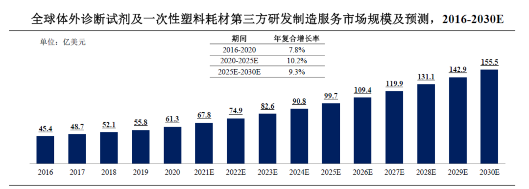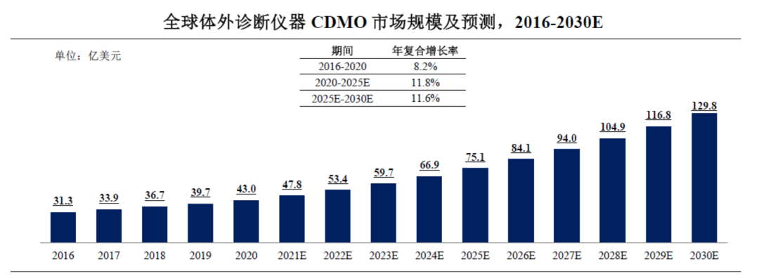 2023年4月17日,深交所官网显示,嘉兴凯实生物科技股份有限公司(以下简称:“凯实生物”)通过上市委会议,保荐机构为中信证券,预计融资金额为7亿元。凯实生物成立于2009年6月,作为国内为数不多提供体外诊断(IVD)仪器及生命科学耗材定制化解决方案的公司,凯实生物因被冠以“IVD仪器CDMO第一股”而备受关注,本次该公司顺利完成IPO,将是医疗器械CDMO跑出来的又一家上市公司。不同于药物 CXO 是资本市场的热门领域,医疗器械 CDMO 行业,乃至整个医疗器械 CXO 行业都被看作进入壁垒低、天花板低,资本介入甚少。但是随着2022年下半年以来,医疗器械整体赛道投资逻辑在不断演进,医疗器械创新创业项目不断获取一轮又一轮的融资。此后,几乎每周pr的最新融资案例里面超过半数都是创新医疗器械领域的,可想而知,医疗器械 CXO 行业的天花板正在被逐步打开,其中,医疗器械 CDMO 企业开始低调崛起,已经有多家企业医疗器械 CDMO 企业成功 IPO。医疗器械中,体外诊断(IVD)领域是不可错过的赛道之一,那么其中IVD器械CMDO行业都有哪些核心玩家?体外诊断,即IVD(In Vitro Diagnosis),是指在人体之外,通过使用耗材、仪器等对人体样本(血液、体液、组织等)进行检测与校验,而获取临床诊断信息,进而对疾病进行预防、诊断、治疗检测、后期观察、健康评价及遗传疾病检测的过程。根据检测原理或应用场景,体外诊断市场一般可分为以下几个细分领域:临床检验、生化诊断、免疫诊断、分子诊断、微生物诊断和即时诊断(POCT)。体外诊断可用于诊断、监视、筛查和评估疾病的易感性,从而有助于获得有关患者的可用医学信息。通过更早和更有针对性的诊断,体外诊断有助于减少患者的住院时间和康复所需的时间。根据体外诊断提供的信息做出医疗决定,有助于指导临床做出更有效率或更加准确的干预和治疗。典型的体外诊断过程需由诊断设备(仪器)使用配套的诊断耗材来产生测试结果。由于每种型号体外诊断分析仪都有专门的诊断目的,需要某些特定的耗材才能执行相关的体外诊断过程,因此耗材也将为体外诊断公司提供了经常性收入来源。体外诊断行业相关的产品主要由仪器、试剂及一次性塑料耗材等部分构成。其中,体外诊断仪器是通过对检测耗材与人体内物质发生生物化学反应时所产生的化合物或化学反应进行定量、定性的分析而得到检测结论的仪器,它对疾病的预防、诊断、监测疾病以及遗传性疾病的预测具有重要作用。体外诊断在样本采集、核酸提取和聚合酶链反应(PCR)三大过程中,除了诊断仪器外,还需要大量的一次性塑料生物实验耗材,如PCR 管、酶标板、反应杯、移液枪头、深孔板等,作为体外诊断全服务流程中必不可少的一部分,这类耗材也可为体外诊断企业提供稳定的现金流。体外诊断仪器、试剂及一次性塑料耗材第三方研发制造服务(仪器领域的“第三方研发制造服务”以下又称为“CDMO 服务”)是指主要通过合同形式向体外诊断仪器及耗材企业提供工艺研发设计、生产服务的第三方专业服务机构。它旨在帮助医疗器械研发主体提高质量管控、缩短试产周期、降低生产成本和提高生产效率。国内的第三方研发制造服务机构较多,但是能从研发一直贯穿到生产的公司很少,主要集中在小规模试产和上市后生产环节。体外诊断仪器、试剂及一次性塑料耗材研发外包服务涵盖临床前研究、小规模试产、临床试验、注册申报和上市后生产5 个环节。根据不同环节提供针对性的服务,主要包括市场调研、风险管理、产品定型、厂房设计建设、工艺流程优化、临床试验方案设计、申报资料编写、规模化委托生产等。体外诊断仪器、试剂及一次性塑料耗材的第三方研发制造在这五个环节中连接紧密,相互支撑,但也存在差别。前者的价值更多的在于研发能力,是技术密集型的外包服务;后者的价值更多体现的是高超的工艺技能与较大的资产规模,是技术密集型和资本密集型的结合,具有更高的准入门槛。体外诊断行业技术更新较快,不论是诊断试剂还是仪器,不同产品均存在一定的技术壁垒,无法相互兼容。体外诊断仪器从研发到上市亦是一项高技术、高风险、高投入和长周期的复杂系统工程,行业中只有少数企业可以兼顾试剂和仪器都达到较高的技术水平,即便国际体外诊断巨头罗氏、雅培、贝克曼、西门子等,为了集中资源优势,多数诊断仪器产品也选择与第三方合作,委托第三方进行诊断仪器的研发和制造。由此可见,专业的CDMO 服务商在诊断仪器研发、制造、上市的整个生命周期中扮演着重要角色。在国内,由于产业发展时间较短以及技术水平的限制,从事体外诊断产业的企业主要为试剂厂商,诊断仪器自主研发和生产厂商较少,早期多依赖于进口仪器。随着国内诊断仪器研发和生产能力的提升,国内大型试剂厂商开始自主研发和生产配套仪器,但由于大部分中小型试剂厂商一方面不具备独立开发配套诊断仪器的技术能力,另一方面企业资金有限,难以打造和培养一支专业的研发团队,难以建设独立的生产线,其对诊断仪器CDMO 服务需求更加迫切,诊断仪器CDMO 模式由此诞生。2017 年,国务院印发《关于深化审评审批制度改革鼓励药品医疗器械创新的意见》,标志着医疗器械上市许可持有人制度正式在国内开始施行。2019 年8 月,国家药监局发布《关于扩大医疗器