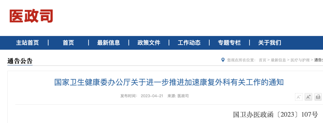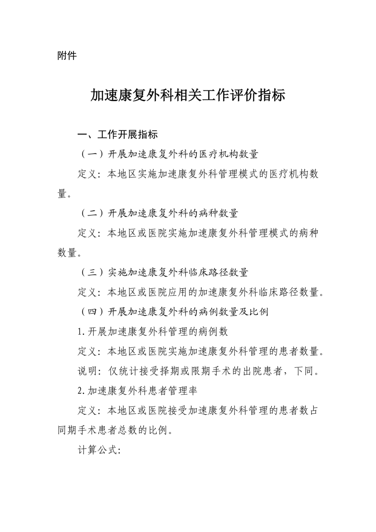 4月21日,国家卫健委办公厅发布《关于进一步推进加速康复外科有关工作的通知》(以下简称《通知》),要求进一步推进加速康复外科有关工作。 国家卫健委在文件解读中提到,加速康复外科是以优化医疗服务流程和围手术期医疗措施为主要方法,以减少术后并发症和应激反应、缩短手术患者住院时间、降低手术风险、促进术后恢复为目的的诊疗理念,以及在该理念指导下的系统化诊疗模式。加速康复外科诊疗理念和模式是提高医疗服务效率,提升医疗资源利用率的有效手段,是推进医院精细化管理和医疗服务高质量发展的重要内容。《通知》要求,加强相关科室能力建设。有关医疗机构要加强手术科室建设,强化相关科室设备设施配备和人才队伍建设,加强相关诊疗指南、技术操作规范宣贯培训,进一步提高临床诊断、治疗能力。同时加强精神(心理)科、麻醉科、手术室、药学部、康复医学科、医学影像科、检验科、病理科、输血科、临床营养科等建设,围绕外科手术患者诊疗需要,全面提升医疗服务能力。提高加速康复外科认识水平。各地卫生健康行政部门和有关医院要加大培训宣贯工作力度,提高医疗机构、医务人员对加速康复外科诊疗理念和诊疗模式的认识,促进医学模式和理念转变,将加速康复外科理念融入外科手术诊疗管理全过程。鼓励二级以上综合医院、相关专科医院成立由分管院领导担任负责人、医务部门负责日常工作、各相关临床科室和职能部门共同参与的医院加速康复外科管理委员会,加强对加速康复外科相关工作的组织领导。医院加速康复外科管理委员会负责制定相关工作计划并推动实施,审定加速康复外科病种和手术目录、医院加速康复外科相关制度、技术规范和实施方案等,制订完善监测评估指标体系并组织实施,协调解决工作中存在的困难、问题。其他级别、类别的医疗机构可以参照制订符合本机构实际的制度方案,将加速康复外科理念和模式融入日常诊疗工作。鼓励各有关外科科室成立科室加速康复外科管理小组,在本医院加速康复外科管理委员会指导下,落实医院有关要求,组织做好本科室加速康复外科实施管理工作。可选择本院诊疗水平较高、条件比较成熟的科室和病种先行实施加速康复外科诊疗模式。针对影响手术实施效果、患者康复进程和医疗服务效率的重点环节、重点问题,如术前准备、手术方案、并发症处理、输血管理、早期康复介入等,制定针对性解决方案。02 构建“诊、治、管、康”全流程服务体系 在诊疗模式上,坚持以病人为中心,强化首诊医师负责、多学科协作医疗服务模式。推动开设相关病种多学科诊疗门诊,建立多学科联合诊疗和查房制度。探索建立专病临床诊疗中心。根据诊疗需要,由外科牵头,麻醉科、手术室、药学部、康复医学科、医学影像科、检验科、病理科、输血科、临床营养科等共同研究明确术前准备方案、手术时机、手术方案,强化用药指导,康复早期介入,保障输血安全,提供营养支持。此外,在医疗服务流程上,有关医疗机构要围绕患者诊疗需求合理配置医疗资源,以提高医疗服务效率、改善患者就医体验为目标实现医疗服务流程再造。推广实施预约诊疗、远程医疗、临床路径管理、检查检验结果互认、医务社工和志愿者服务、日间医疗服务、优质护理服务等。探索形成患者接诊、治疗、转诊、管理的科学流程,构建“诊、治、管、康”全流程的高效医疗服务体系。03 做好术前、术中、术后管理 一台手术就是一个系统工程。《通知》对加强关键环节管理,提高诊疗效果和医疗服务效率。对术前评估、术前准备、手术质量、术后管理、心理支持等提出要求。完善术前评估。实施相关手术前,要组织相关科室对患者病情和一般情况进行全面评估,依据有关诊疗指南、技术操作规范明确诊断、确定手术适应证,排除禁忌症。必要时可组织心内科、呼吸科、临床营养科、麻醉科、精神(心理)科等进行多学科会诊和集中讨论。要根据患者自身基础状态、心理健康状况、合并症情况等,合理确定手术方案、术后康复方案等,选择适宜的手术时机。做好术前准备。在患者病情允许的前提下,指导患者完善术前准备,调整到适宜手术的生理、心理状态,纠正影响手术正常进行或术后恢复的危险因素,增强患者免疫力和耐受手术能力,减少并发症发生。提高手术质量。选择适宜的手术方式、手术路径、麻醉方式等,按照有关技术操作规范和精准、微创、高效的原则实施手术。密切监测患者生命体征和手术反应,综合施策预防并科学处置手术并发症。尽可能减少手术创伤应激。科学评估输血需求,在保障医疗质量安全的前提下,减少血液成分及血制品输注,控制输血并发症。严格落实医疗机构内感染防控基础措施,严格执行有关操作规范和技术标准,降低感染风险。加强术后管理。规范术后镇痛,合理应用抗感染药物。提高护理质量,规范排痰操作、管路护理等。加强患者健康教育,防止跌倒、坠床、误吸、血栓形成、医疗机构内感染等发生。强化康复早期介入,将康复贯穿于疾病诊疗全过程,促进患者快速康复和功能恢复。04 加速康复外科相关工作评价指标