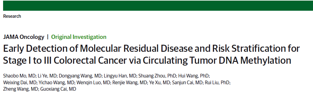 近日,JAMA Oncology(IF 33)上刊载了由复旦大学附属肿瘤医院蔡国响教授团队、上海交通大学医学院附属仁济医院王争教授团队等联合鹍远生物的重要科研成果[1]:“Early Detection of Molecular Residual Disease and Risk Stratification for Stage I to III Colorectal Cancer via Circulating Tumor DNA Methylation(循环肿瘤DNA甲基化检测用于I-III期结直肠癌MRD早期发现及复发风险分层)”。 该研究是国际上首个应用基于PCR的血液ctDNA多基因甲基化技术于结直肠癌复发预测和复发监测的多中心研究,提供了一个与现有MRD检测技术方法相比性价比更高的技术路径和解决方案,有望大大提高结直肠癌复发预测和监测的临床使用普及率,并显著改善病人的生存期和生存质量。该研究也得到了期刊及编辑们的高度评价,列为本期重点推荐论文,并邀请了来自西班牙的Juan Ruiz-Bañobre教授和美国的Ajay Goel教授进行点评。美国著名的生物医药专业媒体GenomeWeb也对本研究进行了报道。 文章发表在JAMA Oncology 结直肠癌(CRC)位列世界癌症相关死亡的第二位[2],5年生存率仅60%[3],复发率相对较高。循环肿瘤DNA(ctDNA)检测已成为肿瘤领域的诊疗新热点[4-5],现有研究多聚焦基于高通量测序技术(NGS)的ctDNA突变,其流程复杂、周期长、成本较高[6],普适性略有不足。 本研究基于鹍远生物自主研发的CRC多基因甲基化检测技术ColonAiQ®常艾克®,在前期研究基础上(2021年发表于Gastroenterology杂志)[7],进一步充分证实了循环肿瘤DNA甲基化在I-III期结直肠癌中的潜在临床应用——复发风险分层、指导治疗决策和早期复发监测等,为这一无创血液筛查和监测技术纳入临床实践提供一定参考依据,并有望成为一个新的兼具灵敏度、时效性和经济性,惠及众多结直肠癌患者的MRD检测新指标。 ▸术后1个月(POM1),ctDNA阳性患者复发风险是阴性患者的17.5倍。若ctDNA和癌胚抗原(CEA)联合检测,则阳性与阴性的复发风险比(HR)为19.0 (P < 0.001)。 ▸接受不同辅助治疗周期/强度的患者,ctDNA均与其预后显著相关,且辅助治疗后ctDNA阳性的复发风险是阴性的13.8倍(P < 0.001)。 ▸根治性治疗后(HR,20.6; P < 0.001)及后续随访监测过程中(HR,68.8; P < 0.001),ctDNA阳性者相较阴性的无复发生存(RFS)率更低。ctDNA分析可比影像学诊断最多提前20个月提示肿瘤复发。 研究方法 本研究最终纳入299名R0切除的I-III期结直肠癌患者,并采集术前(7天)、术后1个月及辅助治疗(ACT)后随访各时点(间隔3个月)的血液样本合计1228份。主要研究终点为RFS。 图1 患者招募分组流程 重要研究结果 1、 POM1:ctDNA可预测CRC患者的复发风险 ➣ ctDNA阳性患者的复发风险显著高于阴性(HR,17.5;P<0.001)(图2)。其预测复发的灵敏度为78.0%,特异度90.2%,并在不同分期的肠癌中都保持稳健。 ➣ ctDNA预测复发的性能优于CEA。 ➣ ctDNA和CEA联合检测可提高预测复发的性能(AUC=0.849),优于ctDNA(AUC=0.839)和CEA(AUC=0.623),且阳性患者相较而言预后更差(HR,19.0;P<0.001)。 图2 POM1时的血浆ctDNA状态以预测CRC的复发 (Kaplan-Meier生存分析,以POM1时的ctDNA状态分层。ctDNA阳性患者的复发风险显著高于阴性患者(HR,17.5;95% CI,8.9-34.4;P<0.001)。) 2、 POM1:ctDNA可实现复发风险分层,指导治疗决策,避免过度治疗 研究团队将III期CRC患者依据临床复发风险评估(高风险(T4/ N2)和低风险(T1-3N1))和辅助治疗周期(3/6个月)划分为不同亚组。 ctDNA阳性: ➣ 高风险人群中,接受6个月辅助治疗的患者复发风险更低; ➣ 低风险人群中,辅助治疗周期与患者复发风险间无显著相关; ctDNA阴性: ➣ 无论临床复发风险与辅助治疗周期,预后均显著优于ctDNA阳性患者; 此外,未接受辅助治疗的I期和低风险II期CRC患者中,66.7% ctDNA阳性患者(4/6)2年内复发,而所有ctDNA阴性患者均未在2年内复发; 3、 综合治疗(手术+ACT或单纯手术)结束及后续随访:ctDNA可比影像学最多提前20个月提示肿瘤复发 ➣ 综合治疗结束后,ctDNA阳性患者的RFS与阴性患者相比显著降低(HR,20.6;P<0.001); ➣ ctDNA可比影像学检查最多提前20个月提示肿瘤复发(图3B); ➣ 在治疗后随访监测的任一时间点, ctDNA阳性皆与更差的预后有关(HR,13.5;P<0.001)(图3C); ➣ ctDNA检测持续阳性的患者RFS显著低于检测持续阴性的患者(HR,68.8;P<0.001)(图3D); 图3 基于纵向队列的ctDNA分析以监测CRC复发 在这篇论文发表的同期,Juan Ruiz-Bañobre 教授和Ajay Goel 教授做了如下点评和推荐: “大量结直肠癌的转化医学研究引领学科发展,尤其是基于ctDNA的MRD检测展现了巨大的潜力,可以通过实现复发风险分层、指导治疗决策和早期复发监测,提升结直肠癌患者的术后管理。 选择DNA甲基化作为新型MRD标志物,相比于突变检测,优势在于不需要做肿瘤组织的全基因组测序筛选,直接用于血液检测,而且避免因检出源自正常组织、良性疾病和克隆性造血的体细胞突变而导至假阳性结果。 本研究以及其他相关研究证实,基于ctDNA的MRD检测是I-III期结直肠癌术后复发的最重要的独立风险因素,可用以协助指导治疗决策,包括辅助治疗的“升级“和”降级“,实现精准治疗。 当下MRD领域发展非常迅速,涌现了大量基于表观遗传学(DNA 甲基化和片段组学)、基因组学(超深度靶向测序或全基因组测序)的创新性、高灵敏度、高特异度的检测技术。我们期待ColonAiQ®继续组织大规模临床研究,可以成为一个兼具可及性、高性能和经济性的MRD检测新指标,能广泛应用于常规临床实践中。“ |
