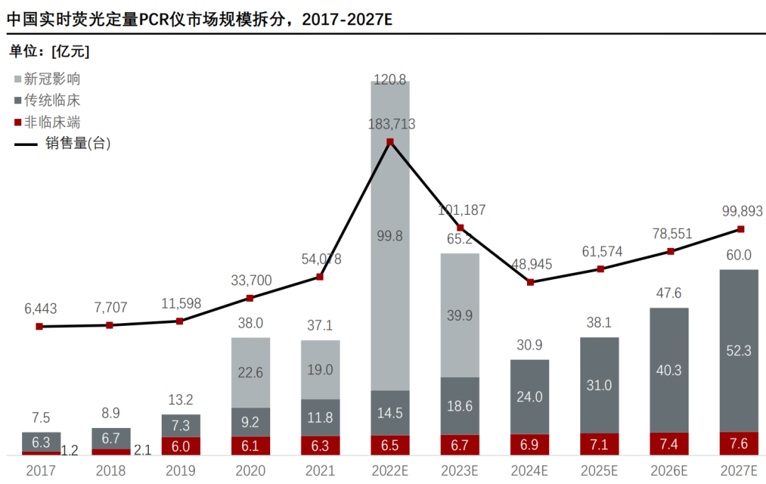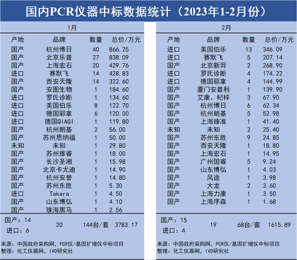 PCR市场有多大?哪些卖得好? 市场是对产品的最好检验,是用户真金白银砸出来的。有关PCR仪器市场数据,黄工找了4个渠道,灼识咨询、QY Research、头豹咨询、化工仪器网,看看不同机构、不同视角、不同时段下,国内PCR仪器市场格局,是怎样的。 头豹咨询,2022年11月,发布报告(上图)《2022年中国实时荧光定量PCR仪器及试剂行业概览》。报告预测,2022年度国内qPCR仪器,市场达120亿元,超过18万台,疫情影响约100亿。传统临床端10多个亿,非临床端(农业、畜牧、海关、科研等)基本在6~7亿元。其实,抛开疫情影响,近5年国内PCR仪器市场,差不多15~30亿元。 主营PCR仪器的苏州雅睿,去年9月申报创业板IPO,至今未上会。文中引用QY Research(北京恒州博智)数据(下图),国内qPCR仪器,2020年销售33700台(与上图头豹一致),预测2021年39000台,2022年44300台。这个数据和头豹所示差距略大。 2021年赴港IPO的,杭州博日科技,则引用灼识咨询数据(下图)。下图所指PCR仪,包括基因扩增仪、qPCR仪、数字PCR仪。2020年,国内PCR仪市场为33亿元,qPCR仪市场规模28亿元,占总体PCR仪市场的85.2%。头豹咨询报告所示为38亿元,考虑疫情影响。 以上3家机构,分别从不同角度,给出qPCR仪器的市场规模、销售数量。这些数据,差异很大,仅供参考。更直接的,是看中标数据。化工仪器网,统计了2023年1-2月份,国内PCR仪中标数据(下表)。1月份国内PCR仪采购3783万元,144台/套;2月份采购1615万元,69台/套。(点击蓝字看原文) 从上表看,1月份:国产PCR仪中标112台/套,占中标总数78%;中标金额为2822.95万元,占中标总额74.6%,平均中标单价25.20万;进口中标31台/套,中标金额为930.43万,占中标总额24.6%,平均中标单价30.01万。2月份:国产中标40台/套,平均单价17.95万,中标额为718.06万,占中标总额的43.9%;进口中标26台/套,平均单价33.56万,中标金额为872.43万。总的看,今年头2个月里,国产PCR仪中标数量更多,但中标平均单价普遍低于进口20%到40%左右。 下图为IVD仪器注册分类目录。本文重点探讨红色部分。注册编号为:2205,分子生物学分析设备。01和02,属于测序仪,下一篇再写。本文只探讨2205-03,核酸扩增分析仪器,属于Ⅲ类,最高风险等级。 通常由控制部件、热盖部件、热循环部件、光电部件、传动部件、嵌入式软件和分析软件、电源部件等组成。原理一般为利用温度控制,为核酸的体外扩增提供适宜环境,采集和分析扩增过程中产生的光、电信号。一般命名为:核酸扩增检测分析仪、实时荧光定量PCR分析仪、全自动PCR分析系统、全自动荧光PCR分析仪、全自动核酸检测分析系统、实时定量PCR仪、恒温核酸扩增分析仪。 根据《聚合酶链反应分析仪》YY/T1173-2010,PCR,聚合酶链反应或多聚酶链反应,是一种对特定的 DNA 或 RNA 片段,在体外进行快速扩增的方法。由变性一退火一延伸三个基本反应步骤构成。而PCR仪,则是基于 PCR技术原理,模拟 DNA或 RNA 的复制过程,在模板引物聚合酶等存在的条件下,特异扩增已知序列,对其进行检测分析的仪器设备。 PCR的原理,推荐看小钱的文章《#PCR,#PCR试剂,#PCR仪器,#PCR耗材》,整理的非常好。小钱运营公众号“微流控学习”3年,严谨、认真、细致、用心。和钱工这两天才加上微信,一直以来都是公众号交流。钱工的内容很精致,用心的人值得关注。 qPCR仪,通常由控制模块、温控模块、光电模块、机械模块、电源模块和软件(控制与数据处理软件)等组成。核心系统是温控模块和光电模块,前者保证反应顺利正常进行,后者保证信号完整读取。2个核心系统,建议看钱工文章:《PCR仪器之温度控制系统》《荧光定量PCR仪之荧光检测模块》(点击蓝色文章可阅读) 温控模块一般有2种,空气驱动循环温控装置和变温金属块,目前常用后者,半导体制冷片。而光电模块,核心是激发光源+光电探测器。一般也有2种模式:卤素灯/卤钨灯+工业相机(CMOS/CCD);LED+光电二极管PD/光电倍增管PMT。当然,光电模块,还有一个重要光学元件不能忽视:滤光片。这是光源和探测器的桥梁。目标片段DNA合成后,会释放荧光基团,发出一定波长的光。常用激发和发射波长如下表。 黄工想重点聊聊,qPCR仪器中的核心零部件:工业相机,即CMOS和CCD。从苏州雅睿招股书(下图)了解,这个元器件卖5~8千/个,价值不菲。工业相机,本质上是图像传感器,半导体器件。不仅在医疗设备,在工业、自动化、消费电子等行业应用甚广。 CCD( Charged Coupled Device ),电荷耦合器件;CMOS( Complementarv Metal Oxide Semiconductor ),互补金属氧化物半导体。两者每个像素块均有光电二极管,将光子转换为电荷,CCD将电荷转移到边缘读出端,在读出端同时转换为电压,再由模拟数字转换器(ADC)转换为数字信号:CMOS每个像素块都集成了放大器,每个像素块均输出电压。