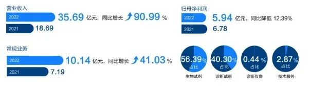 April Day 4月26日晚,诺唯赞分别公布了2022年年报和2023年一季报。根据公告,诺唯赞2022年实现营业收入35.69亿元,同比增长90.99%;实现归母净利润5.94亿元,同比下降12.39%;扣非净利润5.97亿元,同比下降7.28%。 主要系公司对存在减值迹象的新冠相关原材料、在产品、产成品以及用于生产新冠抗原的车间、专用设备计提资产减值准备所致;以及期间费用提高,销售人员及开支增加等因素。 似乎,新冠相关业务褪去后,业绩影响速度如期而至。 2023年一季度营收3.02亿元,同比下降69.02%;实现归母净利润-5062.3万元,同比下降111.74%;扣非净利润-7512.6万元,同比下降118.21%;主要系研发费用、期间费用大幅提高所致,事实上,去年12月放松疫情防控以后,业绩风险诺唯赞已有预测判断,另外研发持续投入同比增长19.32%。多重因素叠加下,可预见2023年业绩承压。 然而和一般企业不同的是,新冠业务对诺唯赞来说只是一个普通过客,其底盘足够稳,造就内在的驱动足够丰、灵活多向。 2022年,诺唯赞新型冠状病毒检测试剂相关的原料、终端试剂盒等产品与服务带来的销售收入约25.5亿元,占公司总体收入71.59%,根据1月表现,预计2023年该部分业务带同比大幅下降。可喜的是,常规业务实现高速增长,常规业务涵盖科研试剂、测序试剂、诊断原料、诊断试剂及仪器、CRO服务等,实现销售收入10.14亿元,同比增长41.03%。 2022年,继续围绕生命科学、体外诊断、生物医药三大业务板块开展,通过自主可控上游技术开发能力和终端产品生产能力,向下游科学研究、高通量测序、分子诊断、体外诊断、医药及疫苗研发企业和动物养殖企业、动物检疫机构等客户输送在研发及生产环节中所需的试剂、原料、终端产品、整体解决方案服务等,推动业务量增长。 报告期内,生命科学领域,持续对高端酶定向进化,目前已累计开发出超过 1,000 种生物试剂,形成PCR、qPCR 、分子克隆、逆转录、基因测序等多产品系列,提升产品性能和差异化策略,在基础科研、测序试剂和动物检疫业务的市场竞争力进一步提高。2022新增160余个科研试剂新产品,110余项测序试剂新产品,并开发了全自动化建库仪器-试剂-耗材的整体解决方案,诊断原料试剂上,推出多款全新的引物与探针全预混系列试剂产品,完成了兽药 GMP 厂房的建设和资质申报,为动物疫病诊断制品的开发、生产奠定基础。 在生物医药领域,客户数量同比增长超过 60%,客单价与复购率不断提升,推出细胞活性检测、报告基因细胞株、残留检测试剂、免洗 ELISA 试剂盒等 4 大试剂产品系列 70 个终端产品,与科研单位合作多个呼吸道感染的抗体项目,推进多个管线,且未来年度内继续增加管线开支。 开发出不同指标、不同突变株的 ELISA 检测试剂盒(40 余个)和不同突变株的假病毒产品(170 余个);截至目前,已承接20余新冠疫苗临床I-III 期项目,多功能 GMP 车间项目已完成一期项目投产使用,可实现单批产能满足1亿剂疫苗生产用酶量,年产能可满足 50亿剂疫苗生产用酶量,作为首家拥有dsRNA残留检测试剂盒从原料到终端产品均自产技术,新冠后有望实现跨产品技术协同。 2022年IVD下游应用得到发展,POCT收入14.68亿元,其中常规1.22亿元,同比增长37.08%,IVD试剂客户覆盖2200医院、ICL等机构,心脑血管、炎症感染等常规项目稳步增长,胃功能、自自体免疫等特色项目开始实现销售。继续完善心脑血管、炎症感染、优生优育、胃功能等 8 大体外诊断产品系列,在心肌标志物、感染标志物系列上已成为我国产品最齐全的企业之一。目前已获108项医械注册证,取得海外准入超过200项,覆盖40余个国家与地区,自主研发生产9 款仪器。 从生物科技领域的核心原料、到诊断试剂和检测设备以及疫苗预防、再到最后的抗体治疗药物,涵盖发现、诊断、预防、治疗的全生命周期,诺唯赞用摆在眼前的丰富的业务方案,实证其强大的综合服务能力。 2022年,研发工作是诺唯赞的重点工作之一。公司持续加大研发投入并扩充研发团队,研发费用投入3.96亿元,同比增长71.98%;整体研发人员数量达1196名,同比增长83.44%;申请专利97项,获得专利授权46项。 诺唯赞核心中的核心源自掌握底层技术,从0到1的原始创新,并能继续开创,兼具未来广阔的空间,多项高端酶、抗原抗体打破国际垄断,是国内少数同时具有自主可控上游技术开发能力的企业之一。 回顾2020、2021 三个报告期研发费用分别为1.26亿元、2.3亿元,占当期营业收入的比例分别为 8.02%、12.33%。 多年来,始终增加技术储备,生物学、酶学、免疫学等多学科技术,建立多项共性技术平台,多技术平台组合,并可拓展疫苗临床CRO服务、抗体筛选、工艺技术优化等服务,使得每年能推出新产品超100种,另外,也有超1000人的研发团队的人才储备,等等均在夯实底层技术的土壤。 依托自主研发的蛋白质定向改造与进化平台与基于单B细胞的高性能抗体发现平台实现了公司生物试剂与IVD核心原料的自主研发与生产。已有300余种基因工程重组酶和 1,300 余种高性能抗原和单克隆抗体等关键原料,有利于公司在面对市场需求时可迅速开发相关原料及对应产品,把握市场机遇,亦有利于保障公司的供应链安全,不对供应商形成依赖。在新冠疫情爆发后,公司实现了PCR 系列、qPCR 系列生物试剂的大规模生产,为国内分子诊断试剂生产企业提供大量新冠核酸检测试剂盒的关键原料。 从2012成立之初,立足生物