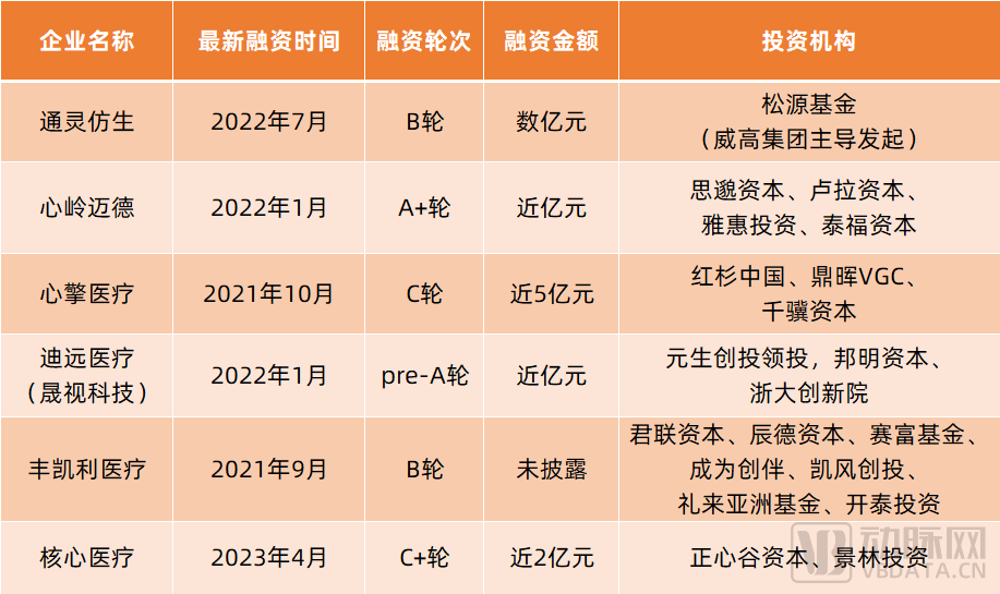 过去20年,中国医疗器械行业以“模仿式创新”打破海外垄断,快速缩短与发达国家的差距。尤其是低值医用耗材和中低端医疗设备领域,国产企业已在全球市场占据一定优势。 如今,中国医疗器械市场已成为全球第二大市场,2025年市场规模将突破1万亿元。在这个规模超万亿元的市场,“模仿式创新”显然不再能满足需求。因此,中国医疗器械行业需要从“模仿式创新”转向“基于临床需求的原始创新”。 不过,对于投资人而言,“基于临床需求的原始创新”通常具有高技术门槛和壁垒,且具有研发周期长、前期投入大、不确定性高、风险大等特点。但是,“基于临床需求的原始创新”却有望颠覆原有市场格局,带来新一轮产业革命。 一边是巨大风险,一边是巨大收益。对此,越来越多的投资人选择拿出真金白银“投早、投小”,以推动科技创新、加速产业变革。目前,这些投资人手握大把钞票,正在寻找下一个医疗器械颠覆性创新技术。 动脉网通过与数位投资人沟通交流,并根据以往投融资数据及创新技术的发展阶段,找到了5个创新性强、商业化潜力大、有望颠覆现有市场的创新技术,供大家参考。 一、介入式人工心脏(pVAD) 介入式人工心脏(pVAD),即经皮置入心室辅助装置,是将小型血泵经皮以介入方式置入心室,通过血泵的作用引流血液进入动脉系统,实现部分或全部替代心脏泵血功能,起到维持人体血液循环的作用。 介入式人工心脏可应用于急性心肌梗死救治、高危PCI手术防护等临床场景,有助于提高相关适应症的抢救存活率。其中,急性心肌梗死救治、PCI等手术,我国每年开展超百万例,市场空间巨大。 在海外,Abiomed已验证了介入式人工心脏的临床价值及商业价值。从临床上看,Abiomed推出的介入式人工心脏产品Impella系列已在全球应用,并已被多个临床指南推荐应用。不过,该产品的渗透率仍处较低水平,还有极大发展空间。 从商业上看,2022财年,Abiomed营收10.3亿美元,同比增长22%,其中来自介入式人工心脏产品的收入为9.85亿美元,占比超95%。可以说,Abiomed靠介入式人工心脏产品撑起了166亿美元估值(约合人民币1150亿)。2022年11月,强生宣布以166亿美元收购Abiomed,同时,若未来达成既定商业和临床试验里程碑,Abiomed的股东还将额外获得最高每股35美元现金权益。 全球范围内,目前仅Abiomed的Impella系列获FDA批准,国内则尚无任何一款介入式人工心脏产品获批。不过,国内已有通灵仿生、心岭迈德、心擎医疗、迪远医疗、丰凯利医疗、心恒睿医疗、核心医疗等企业布局,还有红杉中国、君联资本、鼎晖VGC、千骥资本、雅惠投资、泰福资本、元生创投、辰德资本、礼来亚洲基金、正心谷资本等知名投资机构押注。 其中,通灵仿生已完成动物实验、型式检验,即将进入临床试验;心岭迈德、心擎医疗、迪远医疗、核心医疗均已开展动物实验;丰凯利医疗自主研发的的SynFlow®3.0已于2023年1月进入NMPA创新医疗器械特别审查程序。 根据公开信息整理 二、组织工程小口径人工血管 当人体血管由于疾病、创伤等因素不能正常运输血液时,人工血管可置换血管或旁路搭桥,使血液能够正常运输。目前,人工血管被广泛应用于主动脉置换或搭桥、外周血管旁路移植术、血管创伤修复、血液透析血管通路、冠脉旁路移植术等多种临床场景。 根据《全球及中国人造血管行业研究及十四五规划分析报告》,2020年全球人工血管市场规模达到235亿元,预计2027年将达到318亿元。 按照口径大小,人工血管被分为大、中、小三种规格,通常称10毫米以上的为大口径人工血管,介于6毫米和10毫米之间的为中等口径,小于6毫米的是小口径。其中,如今临床上应用的主要为大、中口径人工血管,全球仍未有小口径人工血管获批。 与此相对的是,小口径动脉疾病具有较高的发病率和死亡率。若开发出小口径人工血管,不仅能救治更多血管病患者,还可极大开拓人工血管市场,并取得丰厚商业回报。 据介绍,大、中口径人工血管主要以涤纶和膨体聚四氟乙烯为主要材料。此种材料制造小口径人工血管时存在血栓、内膜增生、感染等问题,临床表现不佳。不过,随着材料科学的突破及组织工程技术的发展,已有多家创新企业研发布局小口径人工血管,并已取得优异临床数据。 业内人士认为:随着依靠新材料、新技术的人工血管公司崛起,传统的不可吸收高分子人工血管将退出历史舞台。 例如,人工血管领先企业Humacyte研发的人类脱细胞组织工程血管(HAV),采用组织工程技术,在人体外生成“活”的人体血管,临床表现优异。截至2021年底,HAV已植入约471名患者体内,迄今为止没有免疫排斥反应。Humacyte估计,若HAV产品最终获得FDA批准,其血管产品的潜在峰值销售额每年将达到121亿美元。 值得一提的是,2018年,费森尤斯就与Humacyte的HAV技术商业化权利签署了1.5亿美元的战略合作协议。 在国内,领博生物、柔脉医疗、武汉杨森、海迈医疗等创新企业也已依托组织工程等技术布局小口径人工血管。 其中,领博生物自主研发的生物型人工血管已于2022年8月完成首例临床入组;柔脉医疗已研发出小口径组织工程化人工血管与组织化电子血管;武汉杨森研发的小口径人工血管已获批进入绿色通道,并进入动物实验阶段;海迈医疗研发出了自体和同种异体脱细胞基质小口径人工血管。 根据公开信息整理 三、高分子瓣膜 高分子瓣膜是