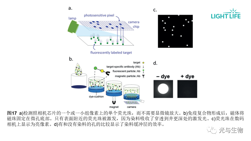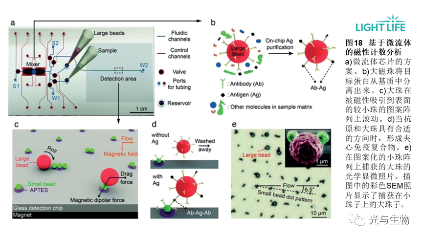 • 开发了一种基于微流体的磁珠计数法,用于检测血清中的蛋白质(图18)。将磁性预浓缩步骤与微流控芯片中结合的磁珠的数字计数相结合,用于检测TNF-α,LOD达到1 fg/ml。