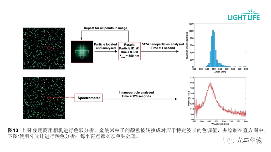 • 智能手机商用相机用于高通量读取等离子体共振(LSPR)光谱(图13)。