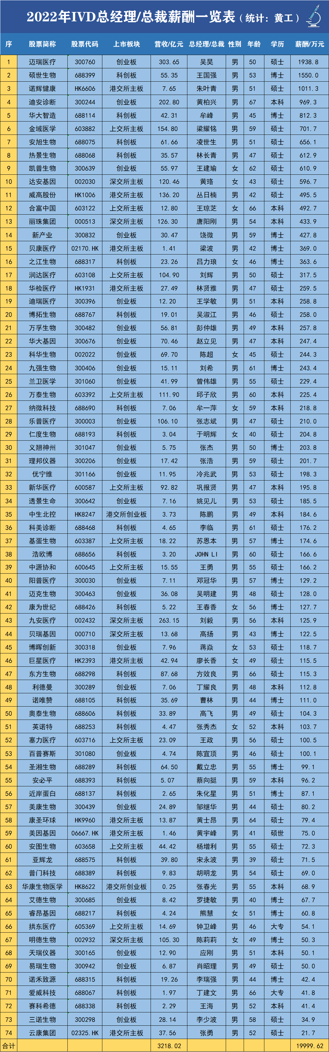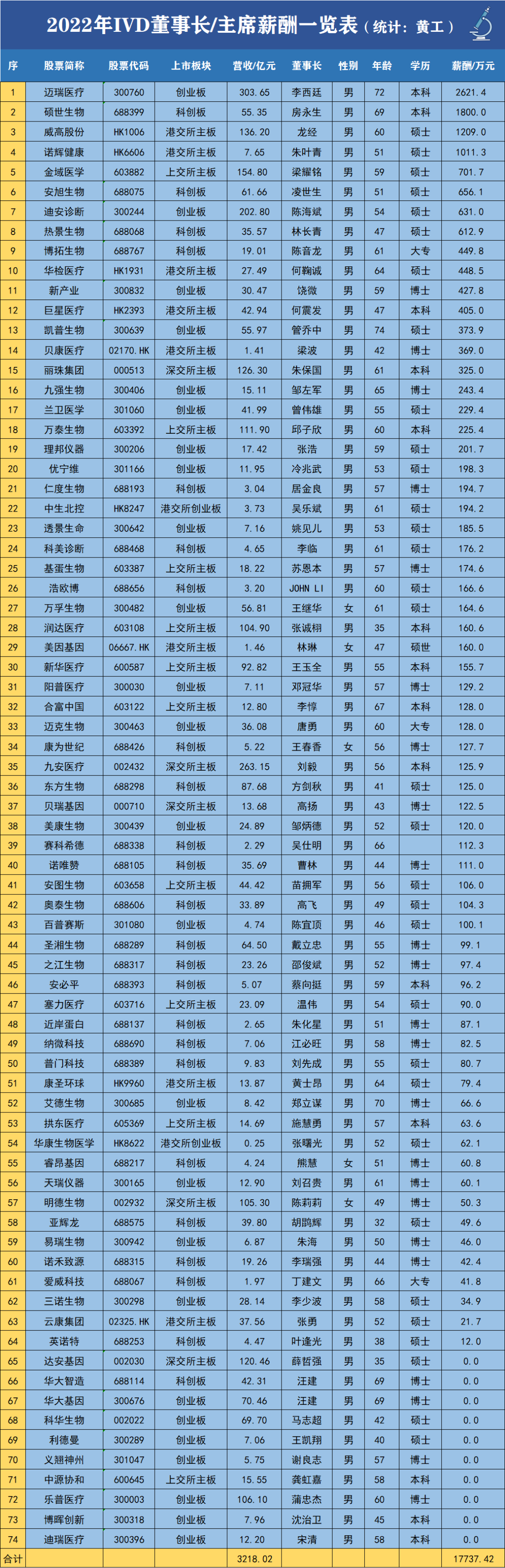 74家IVD董事长+总经理工资榜,猜猜看都有谁?