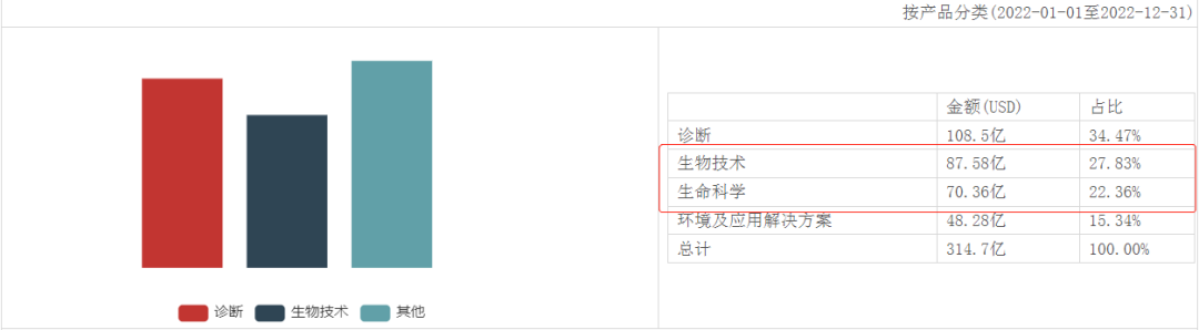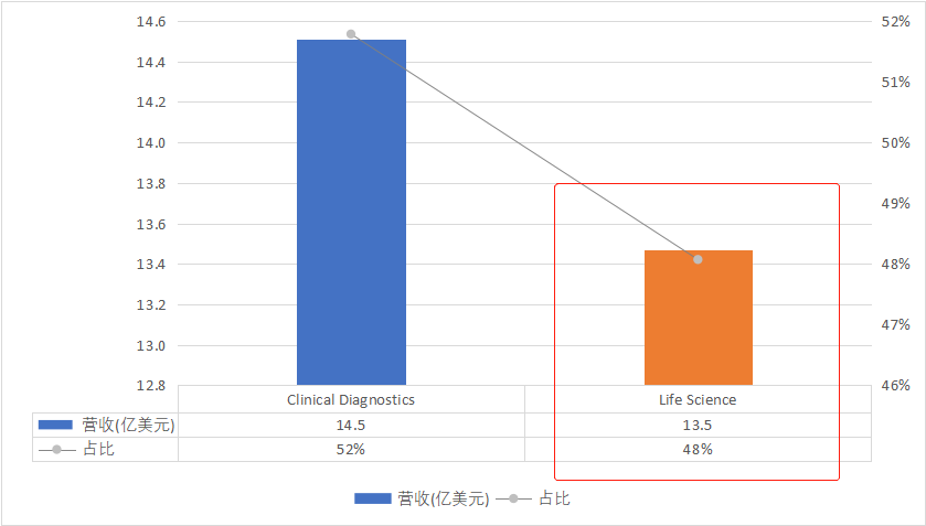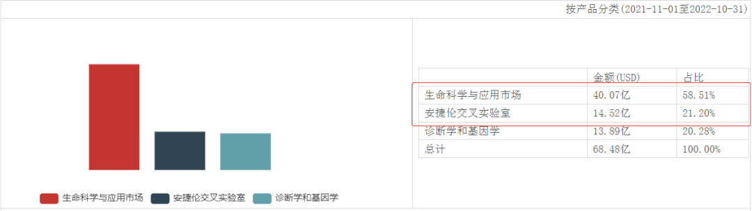 生命科学解决方案:营收135.3亿美元,下滑13%。涵盖生物科学、遗传科学、新一代测序和生物生产四大业务。