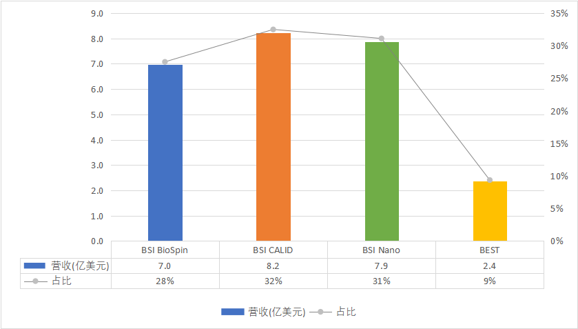BSI CALID(服务医学实验室领域,包括质谱仪等):营收8.2亿美元,增长0.3%,BSI Nano(射频荧光仪器、光谱色谱仪等):营收7.9亿美元,增长13%。BEST(服务于核领域、材料研究等):营收2.4亿美元,增长6%。- 增长主要由磁共振成像设备制造商对超导体的强劲需求驱动。