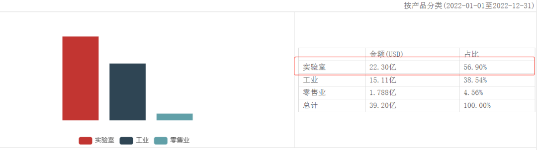 从梅特勒-托利多的运营架构就可以看出其对中国市场的重视:主要以区域划分为五大板块,包括:美国、瑞士、西欧、中国、其他。 岛津2022财年中国营收967.5亿日元(约7.16亿美元),占比20%,是除日本总部外最大市场,同比增长12%。- 主要受到用于药物应用的液相色谱仪的销量增加;以及中国从2022下半年开始的贴息政策,使实验室采购量增长。