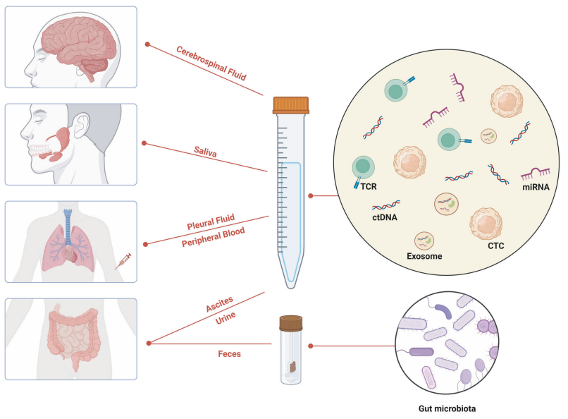 免疫治疗时代的到来给肺癌患者带来了新的希望。靶向PD1或PD-L1的ICIs已被确定为NSCLC的标准护理。ICI是一种突破性的免疫疗法,在获得完全缓解的患者中具有优异的长期生存率。不幸的是,只有一小部分患者受益于免疫疗法。因此,需要新的生物标志物在NSCLC患者中识别会从免疫疗法中受益的患者,而且有助于限制可能导至患者不良反应的无效治疗。在这种情况下,人们对液体活检产生了兴趣。液体活检在许多实体癌中的临床应用已经确立,用于早期筛查和监测最小残留疾病(MRD)或获得性治疗耐药性。在非小细胞肺癌领域,液体活检研究最广泛的成分是循环肿瘤细胞(CTCs)、循环肿瘤DNA(ctDNA)和细胞外小泡(EVs)。作为一种侵入性较小的方法,它允许在整个疾病过程中进行连续采样和监测,提高疗效评估的准确性,并导至更好地调整治疗方案。