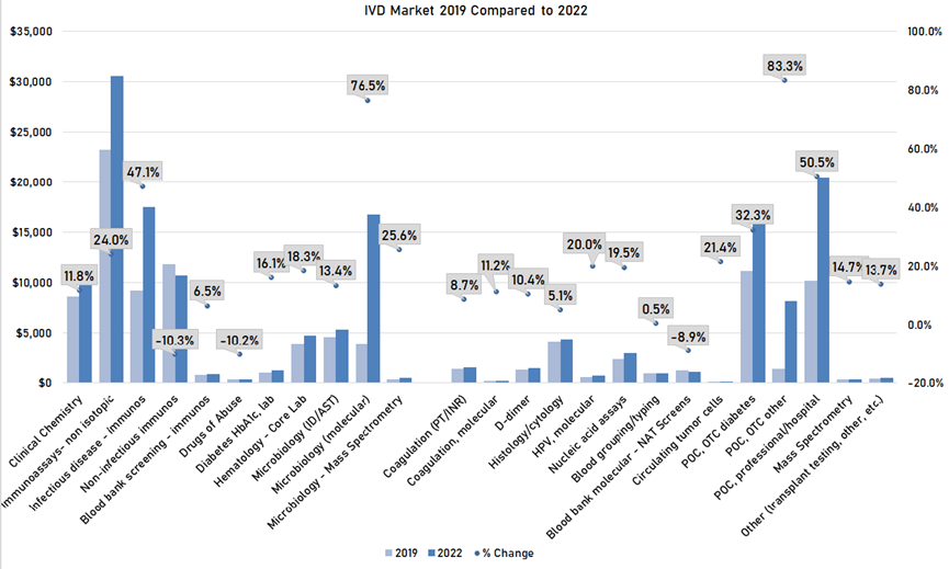 IVD 市场细分,2019 年vs2022 年
