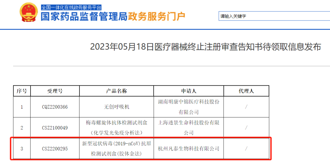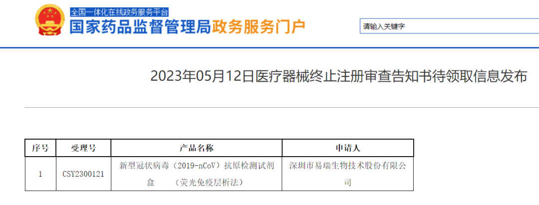 根据国家药监局网站披露,近期又有多款新冠抗原试剂盒终止注册、不予注册。名单如下: