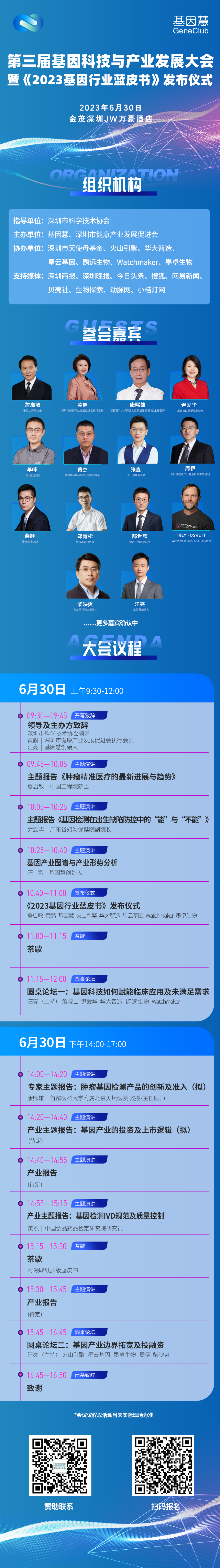 但是,我们需要认识到基因行业还在初期发展阶段,基因科技仍需要医学、数学、遗传学、大数据等学科的进一步交叉融合,需要产学研用的进一步协作从而推进前沿技术转化。同时,也需要学术界和工业界进一步推广和科普。基因慧连续多年公开发布行业蓝皮书,为健康传播、科技推广和交叉学科连接发挥了很好的纽带作用,值得鼓励和赞赏。希望更多的学术界及产业界机构投身学科交叉和前沿技术转化的工作,培养复合型、高端、创新的医学人才,为我国的健康中国建设以及生物经济发展做出应有的贡献。