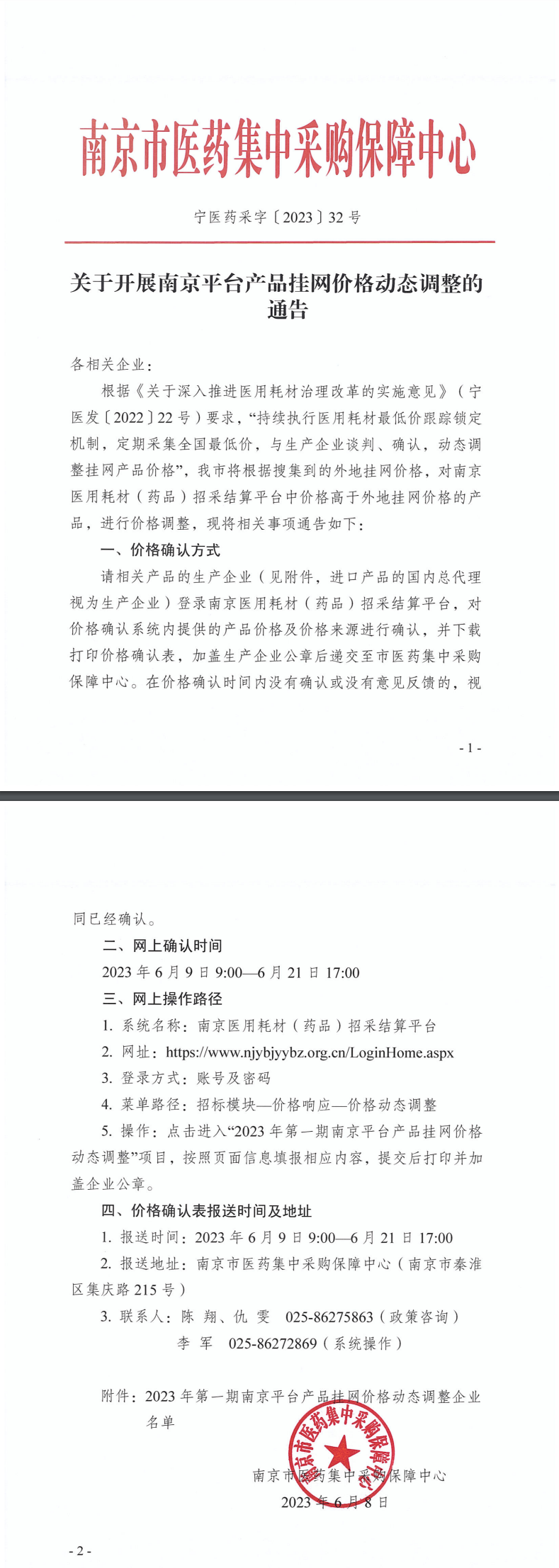 2023年6月8日,南京市药采保障中心发布《关于开展南京平台产品挂网价格动态调整的通知》,对招采结算平台中高于外地挂网价格的产品进行调整。要求相关生产企业于2023年6月9日9:00-6月21日17:00登录结算平台对产品及价格来源进行确认,并将加盖企业公章的价格确认表递交至市药采保障中心,在规定时间内未确认或无意见反馈的,视同已经确认。 通知明确,根据《关于深入推进医用耗材治理改革的实施意见》 (宁医发[2022]22号)要求,“持续执行医用耗材最低价跟踪锁定机制,定期采集全国最低价,与生产企业谈判、确认,动态调整挂网产品价格”,我市将根据搜集到的外地挂网价格,对南京医用耗材 (药品) 招采结算平台中价格高于外地挂网价格的产品,进行价格调整。 目前通告发布了第一期最低价联动企业名单,涉及IVD企业有艾康、爱科来、迪瑞、贝尔、万孚、欧蒙、乐普、豪洛捷、热景、众驰伟业、浩欧博、贝克曼、乐成、国赛、惠安、亚辉龙、迈克、希森美康、新产业、新健康成、莱博、奥普。 通 知 原 文 关于开展南京平台产品挂网价格动态调整的通告 |
