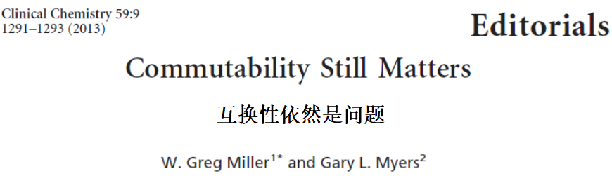 互换性是参考物质的性质,参考物质被检测的值,与具有代表性的临床样品被检测的值,在相同被测量的检测程序的2个或更多个之间,具有相同的关系(1,2)。当某个参考物质将被用于临床实验室检测程序的通用校准品,或将被用于质量评估(能力比对试验)计划去评价检测程序间检测病人样品结果的一致性时,要求互换性(3)。当参考物质被用于某个体外诊断厂商,作为他们内部溯源性程序,为他们的产品校准品定值时,也被要求互换性。 本期杂志上,Zegers等报告了新参考物质对铜蓝蛋白互换性的研究和证实,ERM-DA472/IFCC是被制备替代ERM-DA470的。早期的参考物质以血清为基础,是15个蛋白包括铜蓝蛋白的参考物质,没有被确认互换性,但有报告改善了常规临床实验室检测程序间对数种蛋白的一致性。但是ERM-DA470没有使得病人样品中的铜蓝蛋白结果一致性(harmonization),因它缺少互换性。常规程序结果间缺少一致性,被英国的国家室间质量评估计划(the United Kingdom National External Quality Assessment Scheme)证实,该计划使用了可互换的样品评估性能。Zegers等的报告强调了证实打算用于常规检测程序的通用校准品的参考物质,须确认互换性;参考物质提供者承担去评价互换性作为确认某个参考物质互换性的责任。 检验医学专业已经认识到在预期用作溯源性链的校准品中,参考物质互换性的重要性(1,2)。ISO 17511实施了为校准品和控制品定值在计量上的溯源性,并声明在溯源性链上的每一步,校准品的互换性。校准可溯源至较高等级参考物质或参考检测程序的目的,是为了使检测相同被测量的不同常规临床实验室检测程序对病人样品提供等同的结果。不幸的是,ISO标准对于病人样品的最后结果溯源性要求很模糊。Consequently因此,常规检测程序的产品校准品可溯源至无互换性的参考物质叙述的情况,造成不同常规程序间病人样品缺少一致性(4,7-13)。ISO 17511近期正在修订,我们期望(鼓励)工作组为确保在不同常规检测程序间病人样品结果具有可比性,要仔细地实施必要的溯源性要求。 所有参考物质的提供者,无论是预期作为通用校准品、还是去评估室间质量评估/能力比对试验的结果一致性,必须负责确保该物质与有代表性的临床病人样品是互换的。从实用观点,不可能去评价整个世界上使用的每个检测程序的互换性。合适的方式是对给定的被测量通常使用的程序和技术评价它们的互换性。近期CLSI对可互换参考物质的特性和量化的导则,对支持参考物质生产者以相应确认这一的物质是可用的(14)。发展(形成)不常用的检测程序,包括由实验室发展的项目和进入市场新程序,有责任确定某个给定参考物质是否适合用于这样的程序。对于这样的评估orient定向特定方案,需要由临床实验室社团去形成。 可互换的参考物质有很大的挑战,因为某个给定的分析物的分子形式会尚未很好地理解、或在不同的临床情况下有变异,而某个生物标志物被用于诊断或药物监视的信息。另外,为制备某个参考物质,也会难以得到内含被测量的相应分子形式的生物物质合适量。还有困难是临床样品处理中分子形式被修饰(修改)、对需要的生物标志物的纯化、在制备物质或添加稳定剂时改变了通常的样品基质等。某个生物标志物的纯化形式会不合适去制备用于常规检测程序的以合适基质为基础的物质。例如,基因重组蛋白会可用、但会不具有相应转译后的糖基化、或分子复合物结构,可合适地代表未经改变的临床被测量。除此之外,互换性依然是参考物质的基础要求,因为它将用于校准溯源性过程或评价室间质量评估计划中检测程序间的一致性。 在检验医学中有几个新的发展,在未来的岁月里将对改善检测程序的一致性有关系。WHO近期召集了咨询:WHO生物参考制品在体外检出感染标志物的互换性。该会议预期将在不久公布于WHO网页。尽管这个会议关注的仅是感染疾病的生物标志物,WHO也提供了其他临床实验室学科的“国际标准”和“参考试剂”等实质性的多个参考意见。许多常规检测程序具有校准可溯源至WHO参考物质的,还没有被评价过互换性,有些已经被报告没有实现病人样品结果间的一致性(7-11)。我们称赞WHO认识到参考物质互换性的重要性,以确保它们适应它们的预期用途,和我们期望在未来进行互换性的评价,并更新它们参考物质。 JCTLM列出了参考物质、参考检测程序、和实施参考程序的实验室,已经被评审是否与ISO标准一致、可以用于建立常规临床实验室检测程序的校准溯源性。工作组1的质量手册已经添加了要求,包括参考物质互换性的评估,被考虑列出数据库 (15)。 IFCC科学部近期建立一个互换性的工作组。该工作组正在负责未来形成互换性正规评估的程序,和依据某个被测量的预期临床用途,规定某个参考物质是可互换的的指标。诸如confounding扰乱影响检测特异性、参考物质批号置换的评价、和以新的检测程序对现有的物质互换性的评估等问题,是这个工作组要实施的内容。 AACC已经在导至形成国际临床实验室结果一致性共同体(International Consortium for Hamonization of Clinical Laboratory Results)。这个新计划在2010年的国际forum讨论会上被证实由这个需求,去组织全球的努力推动一致性结果(2)。该计划目的在于提供为依据临床重要性和使用于临床实践导则中对一致性需求,证实和优先考虑的被测量的中心