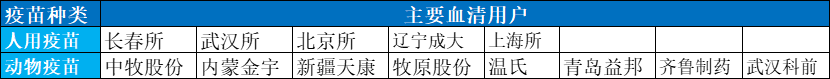 疫苗生产企业是一个特别封闭的系统,都有自己的圈子,A血清品牌商做下了X客户,可能一直做不下Y客户。国内从事人用疫苗和动物疫苗生产的主要企业如下表: