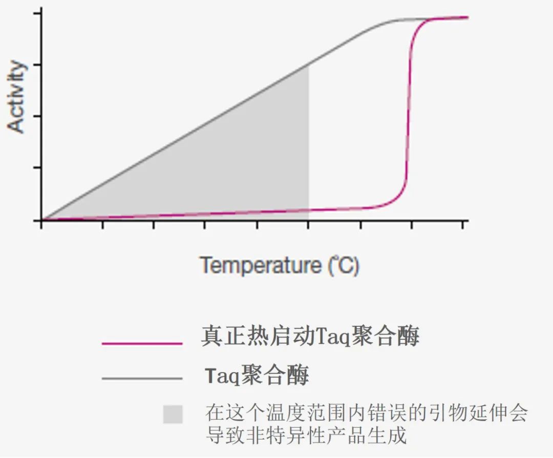 DNA 聚合酶因其在合成新 DNA 链中的关键作用而成为 PCR 的重要组成部分。因此,了解这种酶的特性以及先进 DNA 聚合酶的后续开发对于将 PCR 的功能应用于广泛的生物应用至关重要。 自从在早期 PCR 检测中使用Taq DNA 聚合酶以来,PCR 酶的特异性、热稳定性、保真性和持续合成能力得到了显著改进,以增强PCR扩增的性能,下文详述Taq聚合酶的这几个特性: 非特异性扩增是 PCR 的主要障碍之一,非常影响目标扩增的产量和灵敏度,从而影响PCR扩增结果和下游应用的成功。DNA 聚合酶通常扩增错误引物的目标和引物二聚体,这些是常见的非特异性扩增。 减少非特异性扩增的一种方法是在冰浴上配置PCR反应,有助于保持 DNA 聚合酶的活性在较低的水平,但在 PCR 开始之前仍可能会合成不需要的产物。 另一种解决方案是延迟添加 DNA 聚合酶,直到第一个循环的退火步骤才添加。这种技术被称为“热启动”,因为只有在 90°C 以上的初始变性步骤后才能开始扩增。 尽管可有效提高特异性,但手动热启动过程费力且会增加样品污染和重现性差的风险。1994 年,开发出具有真正热启动特性的Taq DNA 聚合酶 [1,2],将特异性抗体与聚合酶结合,在配置反应体系时可抑制聚合酶的活性。在初始高温变性步骤(例如,>90°C)中,结合的抗体被降解,从而激活 DNA 聚合酶(图 1)。 图 1. 基于抗体的热启动 DNA 聚合酶 变性步骤还分离了在反应设置过程中可能形成的错误引物和引物二聚体,从而防止它们在随后的退火和延伸步骤中被 DNA 聚合酶扩增。以这种方式,热启动 DNA 聚合酶减少了非特异性扩增,增加了产量,并为高通量应用提供了方便的室温设置。 图 2. 聚合酶活性比较: 热启动DNA Taq 聚合酶与普通Taq 聚合酶。真正的热启动Taq聚合酶在 95°C 下热激活后,抗体从聚合酶中解离才可显示出活性,而普通的Taq 聚合酶在加热过程中依然有活性,因此会导至非特异性产物生成。 作为抗体的替代品,热启动属性也可以通过化学修饰以及适配体修饰(缩短激活时间)来实现。无论选择何种热启动技术,DNA 聚合酶的活性在未加热条件下被有效阻断以确保特异性至关重要(图 2)。 由于热循环是实现扩增 DNA 重复链式反应的条件的关键特征,因此所使用的 DNA 聚合酶的热稳定性是一个重要特征。 虽然最初源自嗜热细菌菌株的Taq DNA 聚合酶可以承受相对较高的温度,但其半衰期在 90°C 以上时显著缩短。当使用长时间的高温使具有二级结构和富含 GC 序列的 DNA 变性时,这种不足会带来挑战。 同样,在扩增长模板时,TaqDNA 聚合酶可能需要以更高的量提供或补充以延长孵育时间。因此,从超嗜热生物体中分离出的 DNA 聚合酶由于其较高的热稳定性,已成为克服这些挑战的工具。 一种众所周知的超热稳定酶是Pfu DNA 聚合酶,来自热液环境中发现的古菌超嗜热火球菌。在 95°C 下,Pfu聚合酶的稳定性比Taq聚合酶稳定约 20 倍 [3]。其他流行的超热稳定 DNA 聚合酶包括来自古菌Thermococcus和Pyrococcus物种的 KOD 和 GBD 。 尽管古细菌 DNA 聚合酶具有极高的热稳定性,但它们在某些情况下可能存在局限性。例如,由于较低的持续合成能力(与Taq DNA 聚合酶相比),超热稳定Pfu DNA 聚合酶合成 DNA 的速度较慢。 此外,由于尿嘧啶结合口袋作为 DNA 修复机制的存在,古细菌 DNA 聚合酶无法扩增含有尿嘧啶的 DNA 模板 [4,5]。含尿嘧啶的 DNA 序列是通过亚硫酸氢盐转化进行PCR 残留预防和基因座甲基化分析的基础。 DNA 聚合酶的校对能力决定了保真度,从而提高了 DNA 序列复制的准确性。高保真DNA聚合酶是具有很强校对活性的酶。DNA 聚合酶准确复制 DNA 序列(即获得低错误序列)的能力在克隆、测序和定点诱变等应用中至关重要。 DNA 聚合酶的校对活性基于其 3' → 5' 核酸外切酶活性,可纠正错误掺入的核苷酸。核酸外切酶活性发生在 DNA 聚合酶上与其 5'→ 3' 聚合酶活性位点分开的位置。 当不匹配的核苷酸掺入聚合域时,DNA 合成会因不利的碱基配对动力学而停滞。延迟允许切除不匹配的核苷酸,并通过 DNA 聚合酶用正确的核苷酸替换它 [6]。 DNA 聚合酶的保真度通常表示为错误率的倒数(保真度 = 1/错误率),这是指错误掺入的核苷酸数与聚合的核苷酸总数之比。因此,测得的 DNA 聚合酶保真度在很大程度上取决于 PCR 扩增子的长度以及用于生成 PCR 产物的 PCR 循环数。 通常,保真度表示为相对于Taq DNA 聚合酶的保真度。天然存在的校对 DNA 聚合酶(例如Pfu和 KOD)的保真度约为Taq保真度的 10 倍。然而,“下一代”高保真 DNA 聚合酶是通过定向进化设计的,具有出色的保真度,是Taq聚合酶的 50-300 倍以上。对于这些酶,错误掺入率约为百万分之一的掺入核苷酸。 酶的持续合成能力定义为在单个结合事件中被处理的核苷酸数量。DNA 聚合酶的持续合成能力通常反映合成速率和速度,以及对其底物的亲和力。因此,高加工能力的 DNA 聚合酶有利于扩增长模板和具有二级结构和高 GC 含量的序列,并且存在血液和植物组织中存在的 PCR 抑制剂(例如肝素、木聚糖和腐殖酸)。 早期的高保真 DNA 聚合酶往往表现出较低的持续合成能力,因为它们具有很强的核酸外切酶活性,从而减慢了聚合反应。因此,长靶标 DNA 的扩增速度会显著减慢。例如,校对Pfu DNA聚合酶的保真度是Taq DNA聚合酶的7倍,但其合成率不到Taq聚合酶的一半。 当 DNA 聚合酶被设计成具有另一种蛋白质的强 DNA 结合结构域而不
