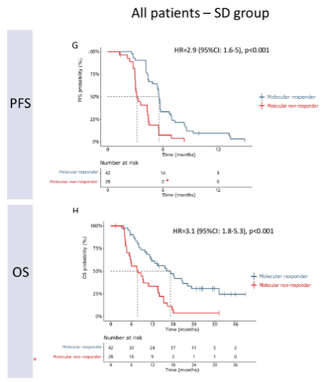 ctDNA-MRE在肿瘤治疗中应用 在刚刚举办的2023 ASCO会议上,有一项来自上海市肺科医院周彩存教授团队的研究2,研究发现在227名IIIB-IV期肺鳞癌患者中,使用臻和“MinerVa-Delta”技术平台,以70%作为cut-off值,可以明显区分出分子应答后,治疗获益人群,同时对于影像学表现为SD的患者,分子应答的患者相比较未应答患者有更好的获益。