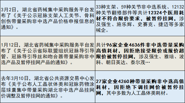 这并非是湖北省首次提出,对高值耗材带量采购非中选产品不执行限价,采取暂停挂网的决策。