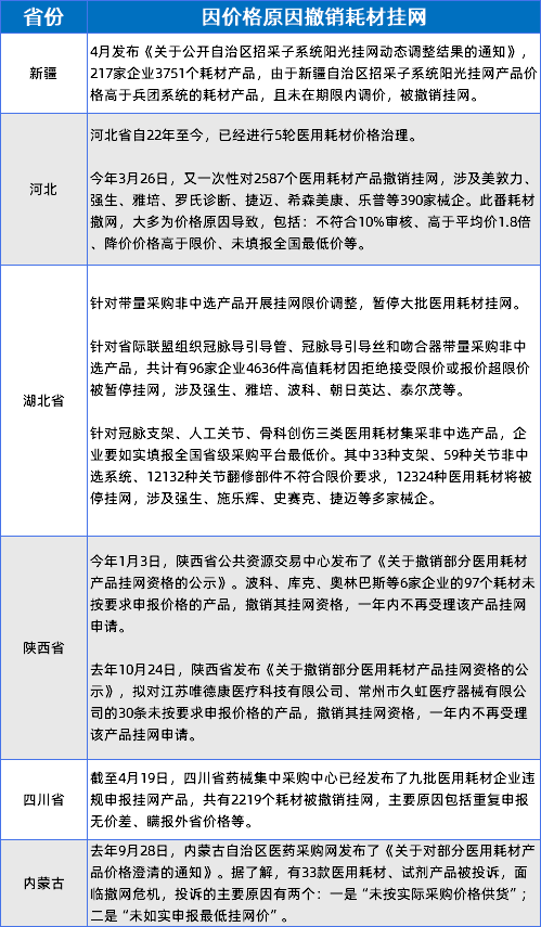 不仅仅是湖北省,目前,全国范围内各省医用耗材招采平台,均掀起了一股挂网耗材整治热潮,大批医用耗材被踢出挂网平台,无缘当地公立医院采购。