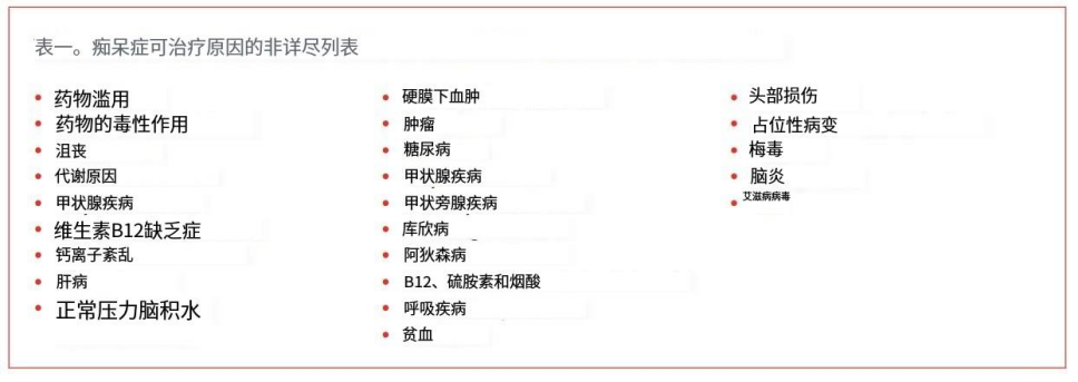 造成痴呆的原因有多种,参考国际阿尔茨海默报告痴呆分类见下表,阿尔茨海默症是造成痴呆的主要病因。