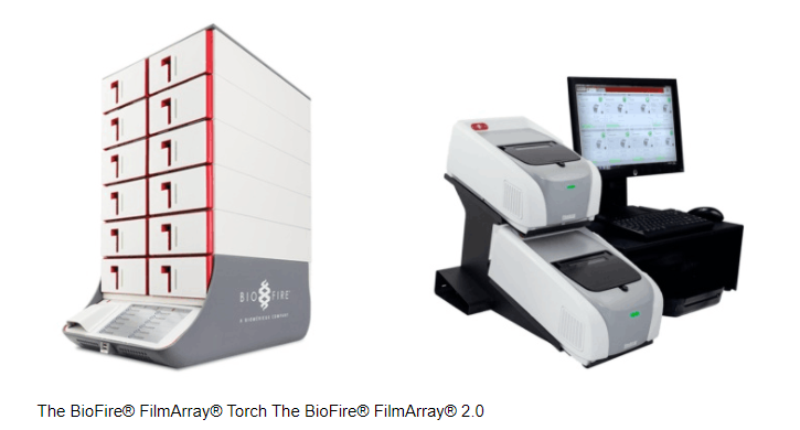 大家如果对于BioFire、FilmArray还有梅里埃之间是什么关系感兴趣,可以百度一下,这里就不做过多赘述了,这次NMPA批准的是拜奥法尔诊断有限责任公司(BioFire Diagnostics,LLC)生产的“脑炎/脑膜炎多重病原体核酸联合检测试剂盒(封闭巢式多重PCR熔解曲线法),也就是FilmArray的Meningitis/Encephalitis 脑膜炎 ME panel。搭配的机器就是下图右边的这款Filmarray2.0系统,是一款非常不错的分子POCT产品,机器是2016年拿到国家药监局的注册证(国械注进20163222753)的,但是在试剂的报证上面一直是命途多舛,与赛沛GeneXpert系统不同的是Filmarray系统做的产品都是10重以上的多联检,比如说呼吸道、肠道、血流、肺炎等按病种分类的多病原检测菜单,有兴趣的同学可以点这个链接进行了解。
