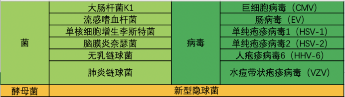 这次获批的产品由FilmArray ME测试条、样本缓冲液、溶解液、一次性使用红色样本注射管和独立包装移液管组成,是一种一次性封闭检测试剂,用于体外定性检测具有脑膜炎及/或脑炎体征及/或症状的人群的脑脊液 (CSF)样本中的14 种细菌、病毒和隐形球菌的核酸。可在1小时左右获得检测结果。l Meningitis/Encephalitis 脑膜炎panel(标本类型:脑脊液CSF)仅使用0.2 mL的脑脊液(CSF),BioFire ME Panel即可在一小时内对14种与中枢神经系统(CNS)感染相关的最常见细菌,病毒和真菌病原体进行全面检测。具体菜单如下:(总体灵敏度为94.2%,特异性为99.8%)