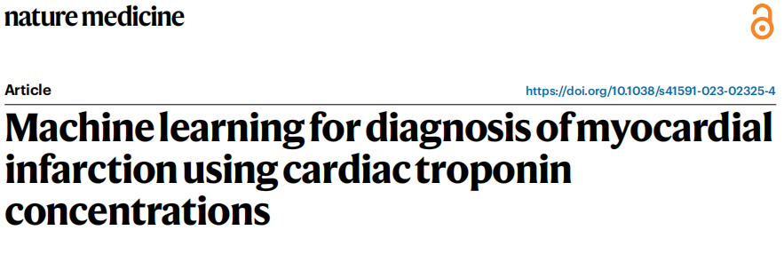 近日,一组研究团队在杂志Nature medicine上发表了一篇题为“Machine learning for diagnosis of myocardial infarction using cardiac troponin concentrations”的文章。在这项研究中,作者使用机器学习方法将心肌肌钙蛋白指标和临床特征结合起来,并开发了一个临床决策支持系统,称为急性冠状动脉综合征诊断和评估(CoDE-ACS),该系统使用机器学习模型来计算单个患者心肌梗死的概率。然后从外部验证了CoDE-ACS的诊断性能,并将其与指南推荐的途径进行了比较,以证明它如何在临床实践中使用。