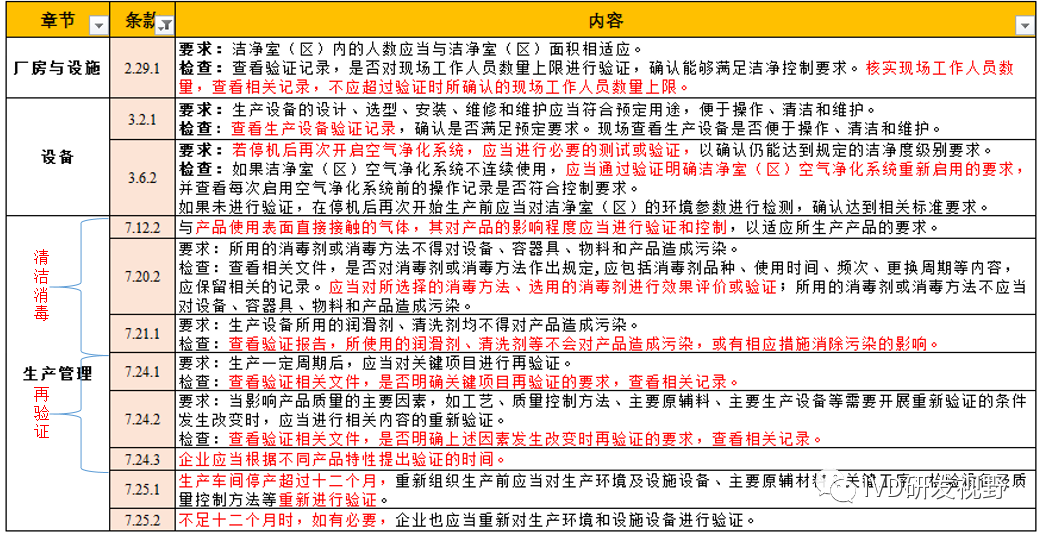 (3)《医疗器械生产质量管理规范体外诊断试剂现场检查指导原则》对GMP的要求进行了细化,在9个章节,总共24个条款中对验证作了要求。以下显示未直接在GMP中体现,新增细化条款要求。