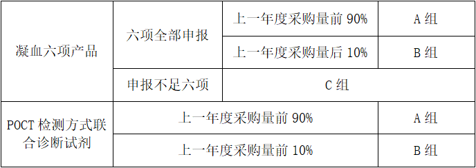作为联合检测项目,本次勾选的项目是否齐全将会影响到带量采购项目的分组。也就是说,对于凝血六项来讲,六项项目全的才能进入A/B组,项目不全,只能进入C组