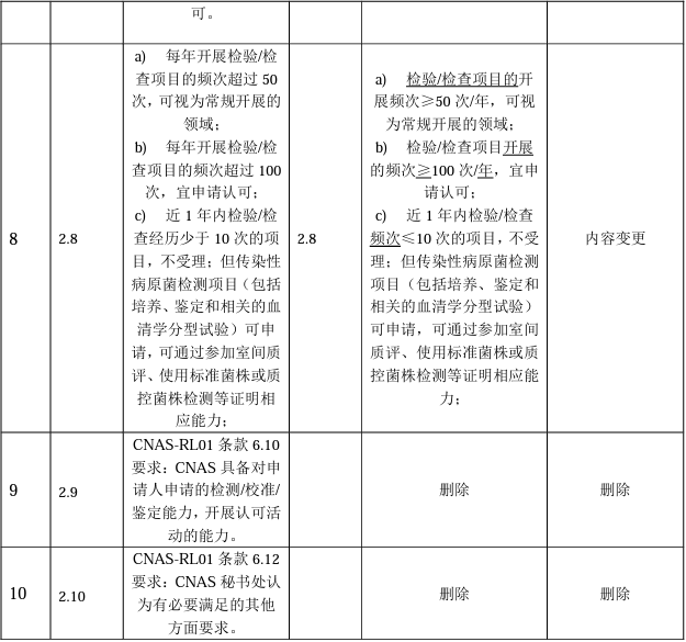 《医学实验室认可受理要求的说明》2023版与2021版修订内容差异如下: